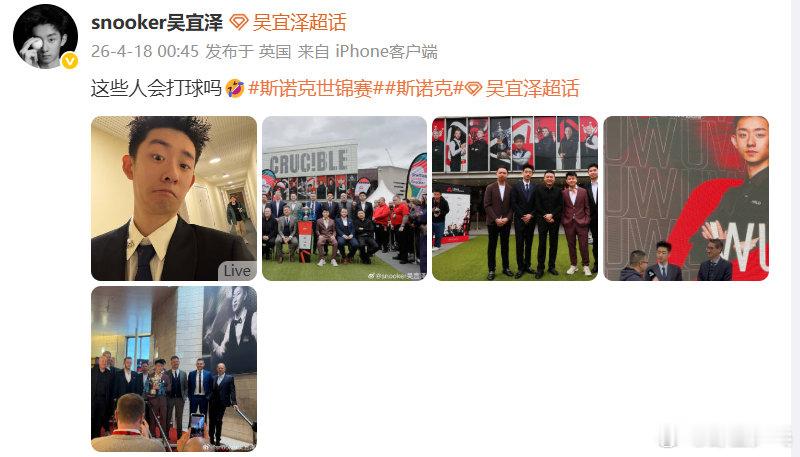 吴宜泽晒世锦赛种子选手合影晒出世锦赛种子选手合影,调皮发问:这些人会打球吗🤣,