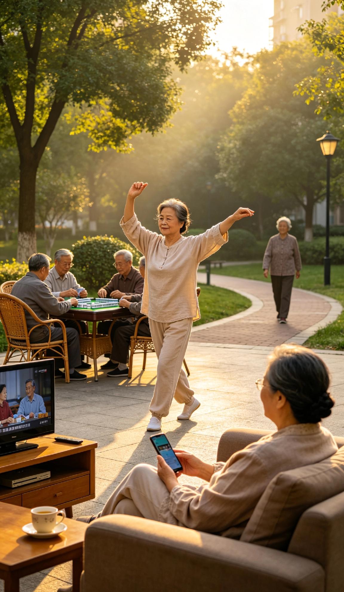 晨起奔赴公园锻炼,舒展筋骨,拥抱清新晨光;中午悠闲待在广场,晒晒太阳、约好友打牌,静静看旁人打麻将,惬意自在。