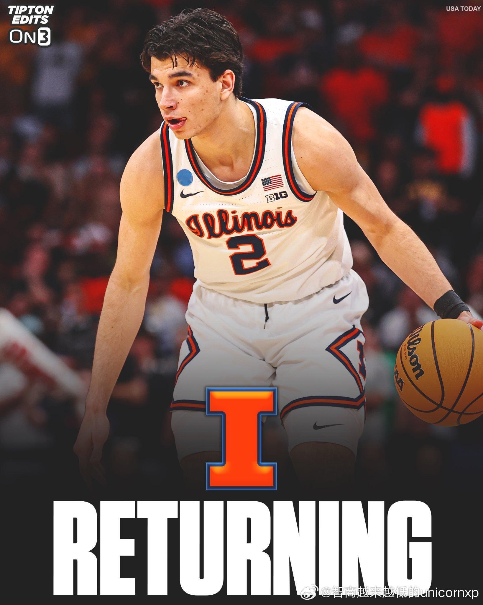 小佩贾Andrej Stojakovic(2004-201cm-SF) 宣布留校伊利诺伊,巴尔干男团悉数回归NCAA张博源