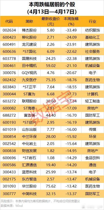 本周涨跌幅居前股名单A股