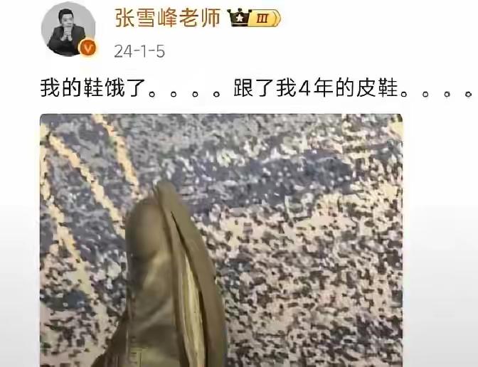 开口的鞋子是张雪峰老师在2024年1月5日发布的动态,他说,这鞋跟了他4年!