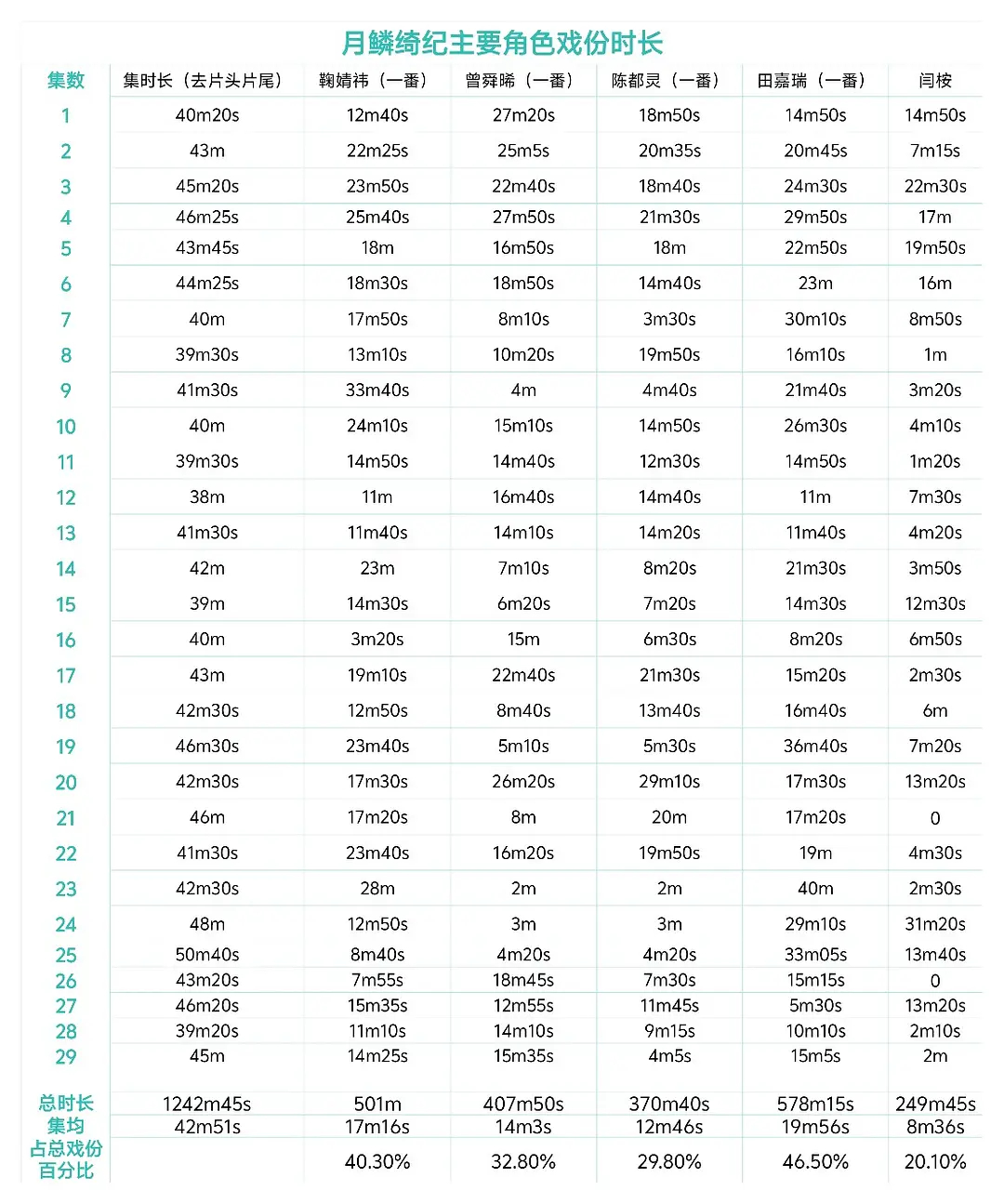 《月鳞绮纪》四大主演戏份占比,咋不弄个五人平番呢,这个看起来真实一点,符合看剧体感。