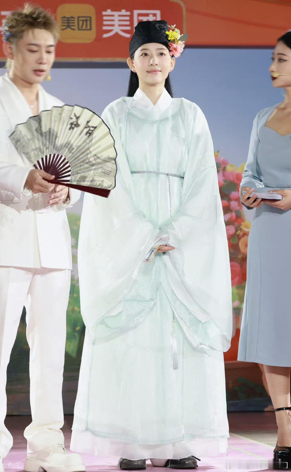 李斯丹妮在洛阳体验簪花颠覆舞台酷飒形象,李斯丹妮洛阳簪花化身翩翩公子,眉眼舒展气