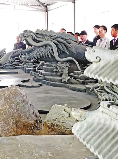 十几位雕刻师傅分工协作,用传统平雕、浮雕、透雕技法,一点点雕琢,打坯、凿粗、刻细、打磨,全靠手工,巨型砚台雕刻,要兼顾整体平衡和细节精准,前后耗时数年,这方“中华腾龙砚”才算完工。