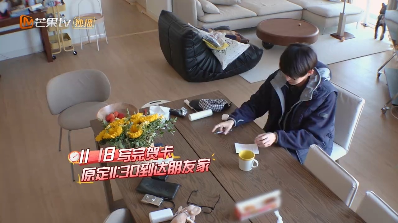 唐九洲出门磨蹭甩锅给狗唐九洲约好去井胧家,在家磨磨蹭蹭写贺卡挑衣服,到点才出门,