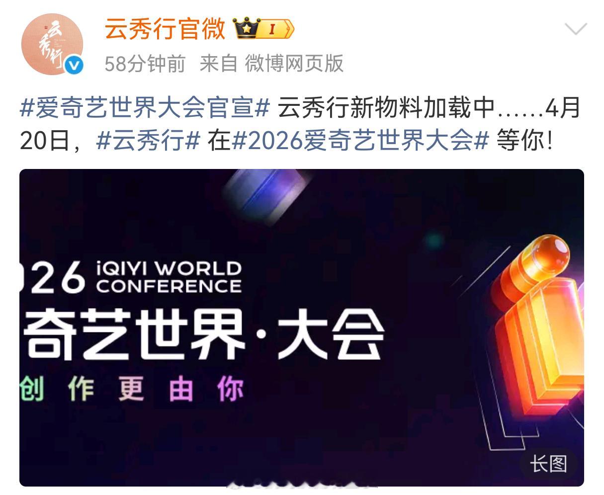《云秀行》将于明日发布艺人id,于爱奇艺视界大会发布新物料,这是要播剧的节奏吗?期待邓为郑适楼启炎2026爱奇艺世界大会