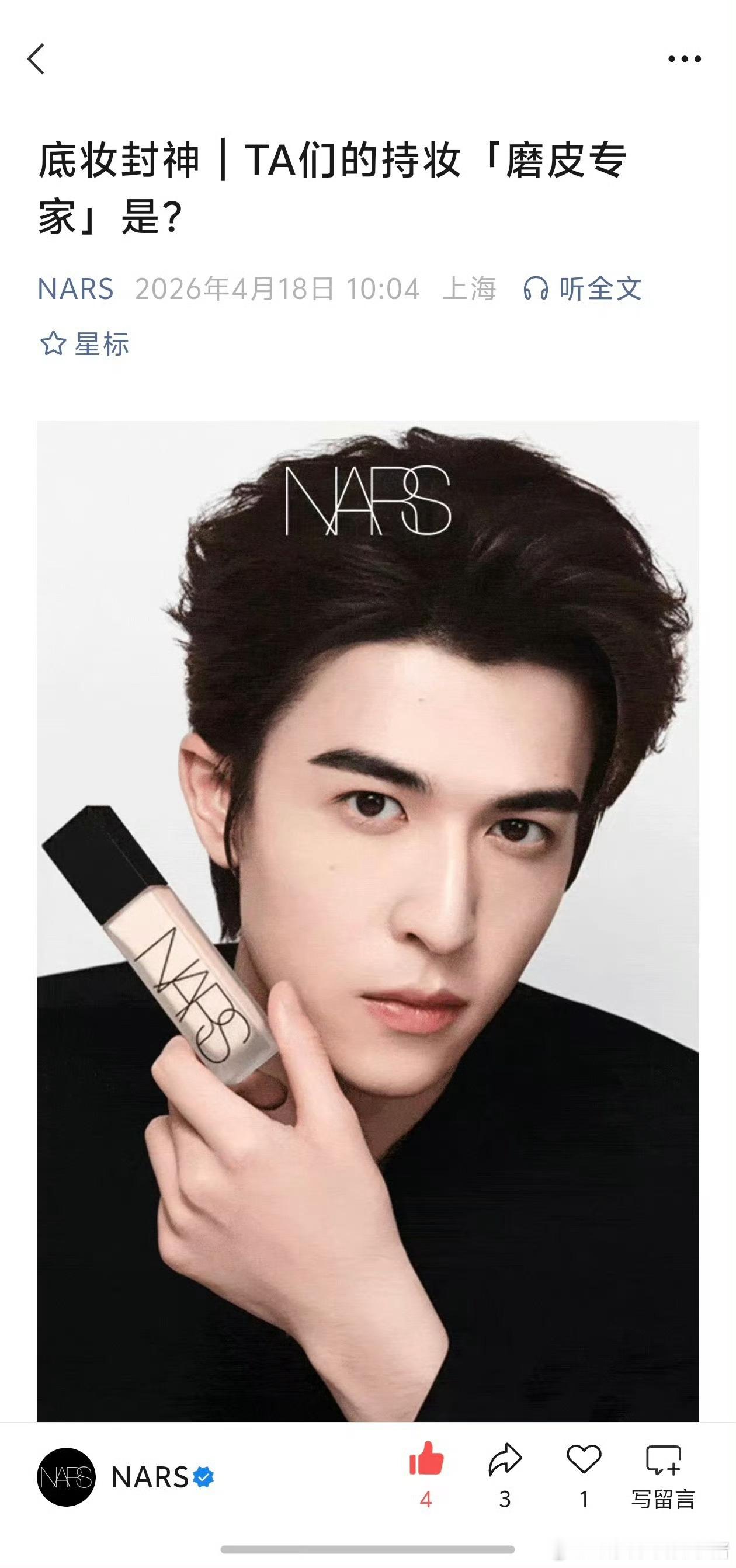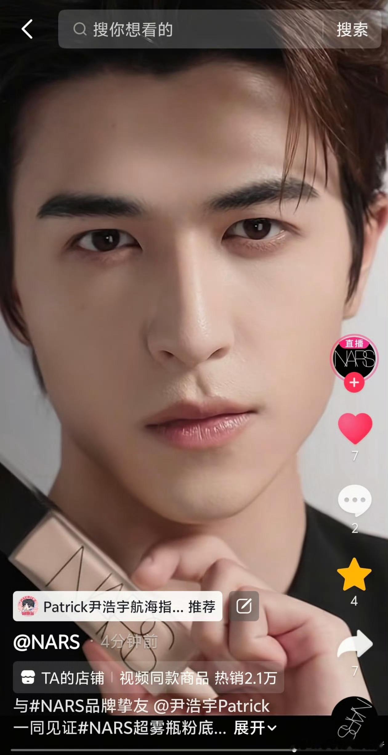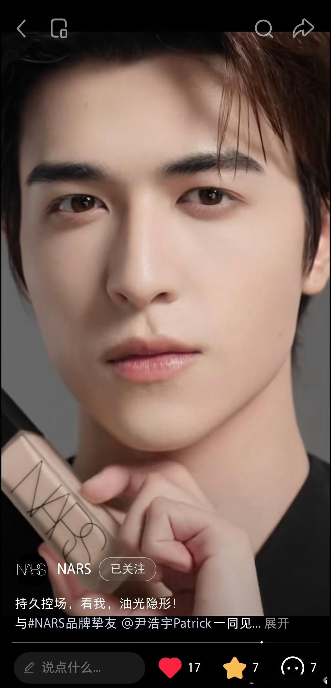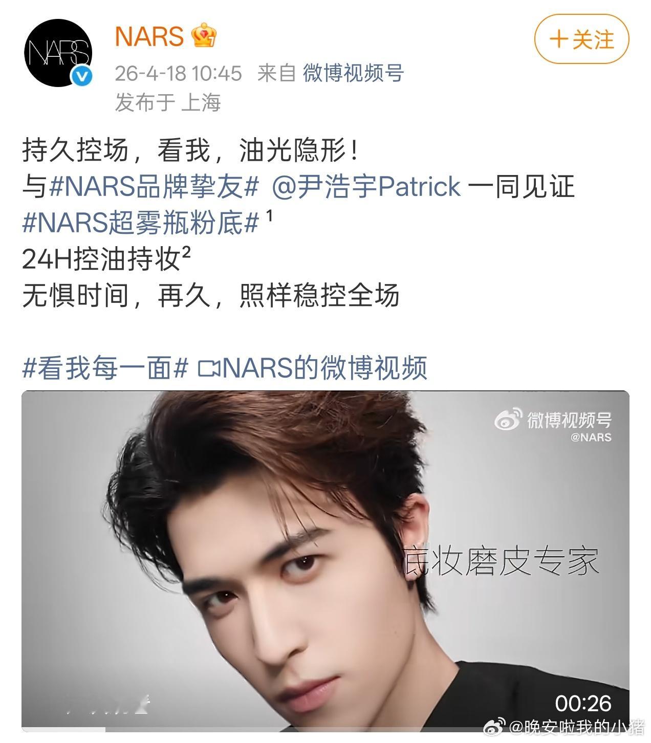 尹浩宇官宣Nars品牌挚友再登世趋,全平台官宣🐮