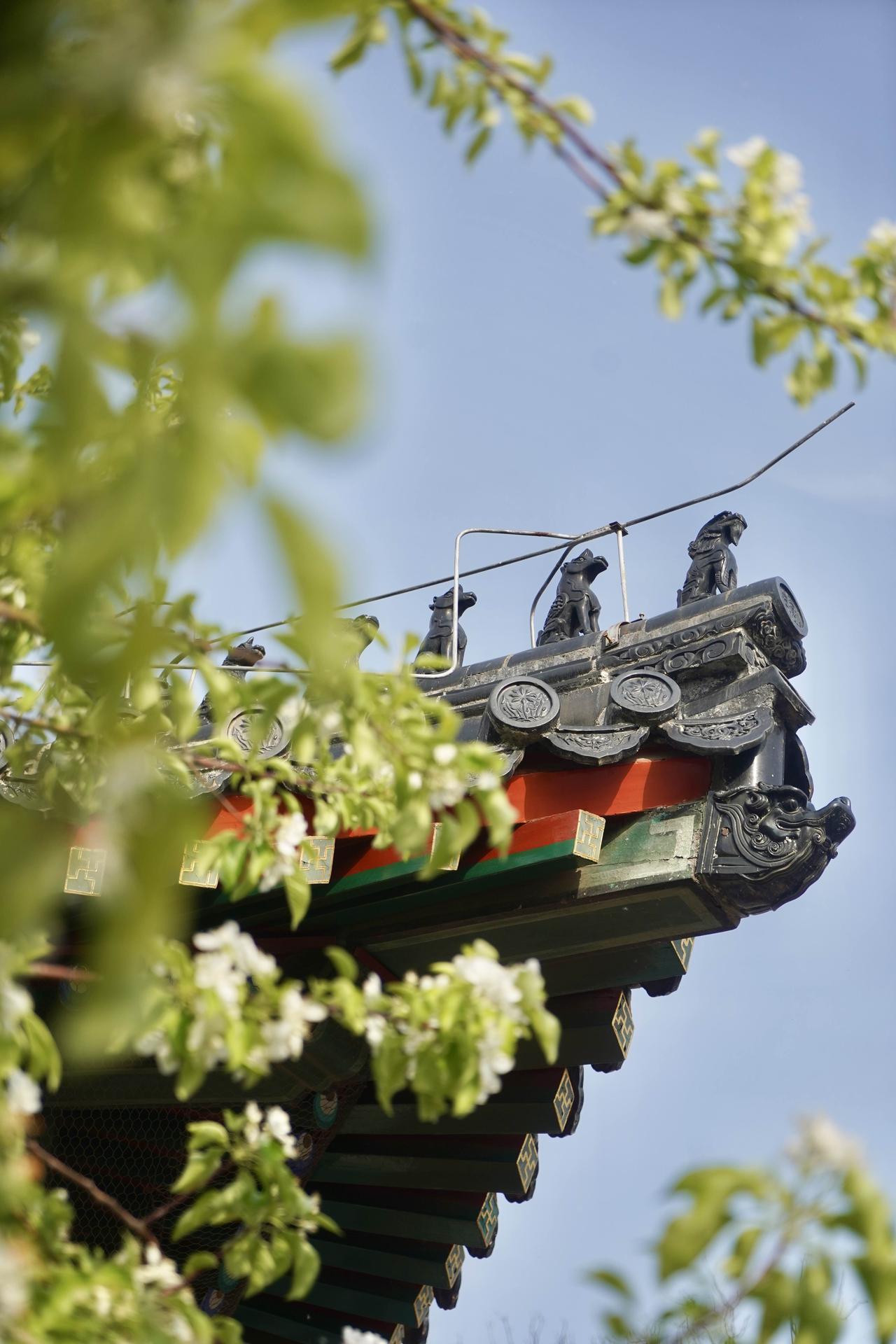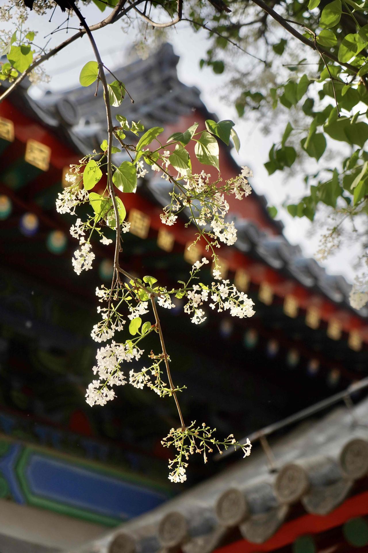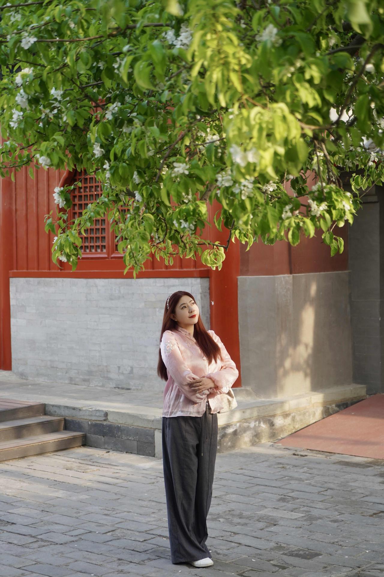 📷 3-4月智化殿门口两株古梨树花开如瀑,院内红墙灰瓦,雕梁画栋,室内有北京现存完整的明代木结构建筑群之一,精美壁画佛像,每天有非遗京音乐表演