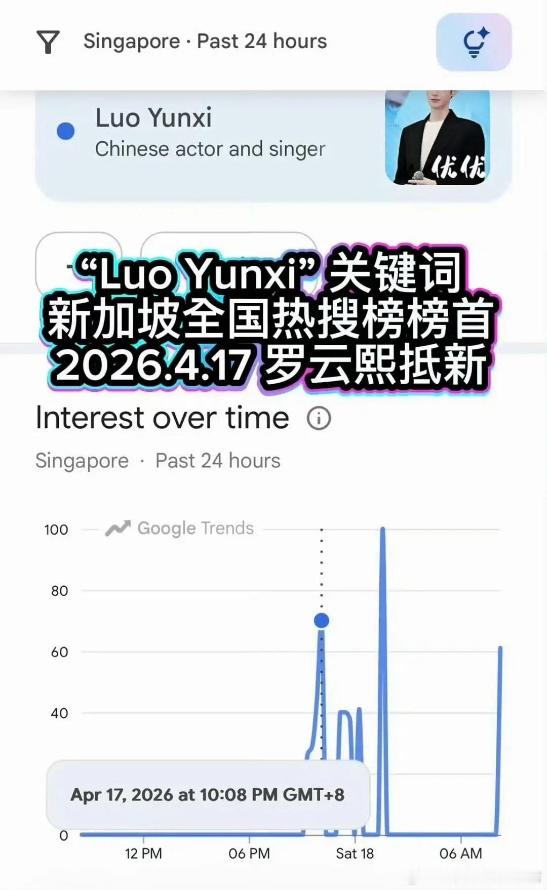 罗云熙海外人气好高啊,深夜抵达新加坡都有官媒视频报道,登顶全国rs榜首
