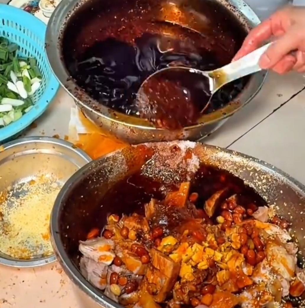 有博主花费403元买了一只土鸡,反复跟老板说“少放料”,结果老板当场反向操作,把糖、花椒、辣椒等调料直接放到都快堆成小山了,其中光糖就加了20多勺!博主当时就懵了,觉得这哪是拌鸡,分明是拌调料啊!