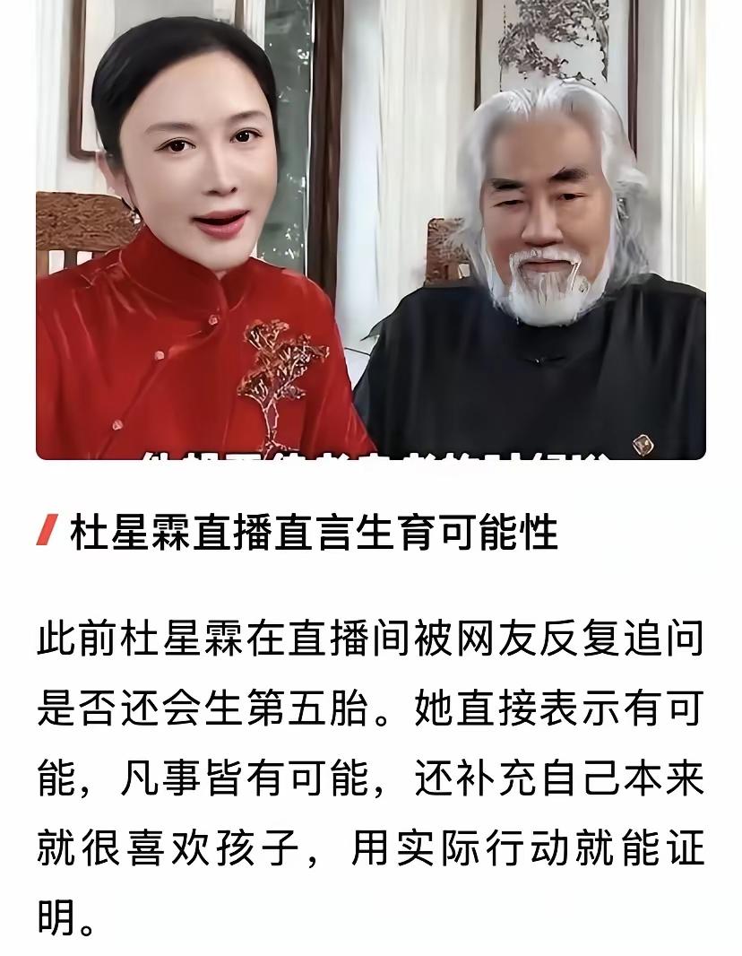 杜星霖在直播间被粉丝迫问下表示,正在安排生育第五胎。