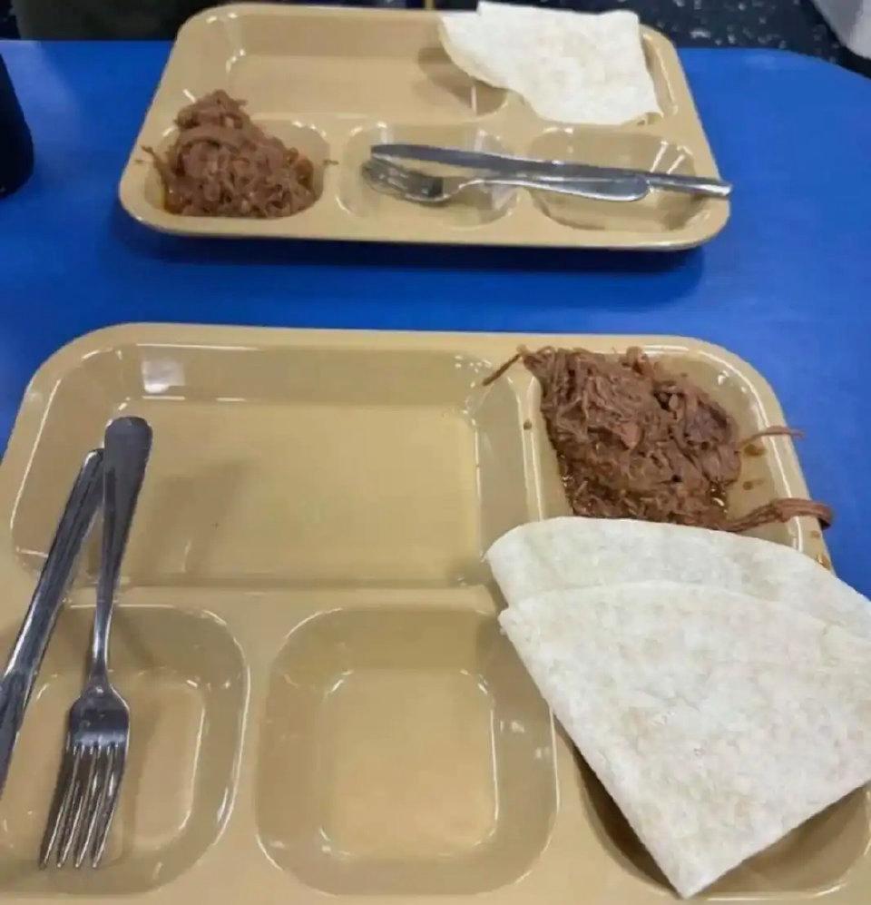 然而舰上流出的影像资料呈现不同状况。的黎波里号士兵拍摄的午餐画面显示托盘内仅有一勺碎肉与玉米饼,林肯号晚餐照片则为少量水煮胡萝卜、干肉饼及灰色加工肉块。部分士兵反映食物质量不佳且长期存在饥饿感,家属亦证实新鲜蔬果已中断供应,舰上咖啡设备故障未能修复。