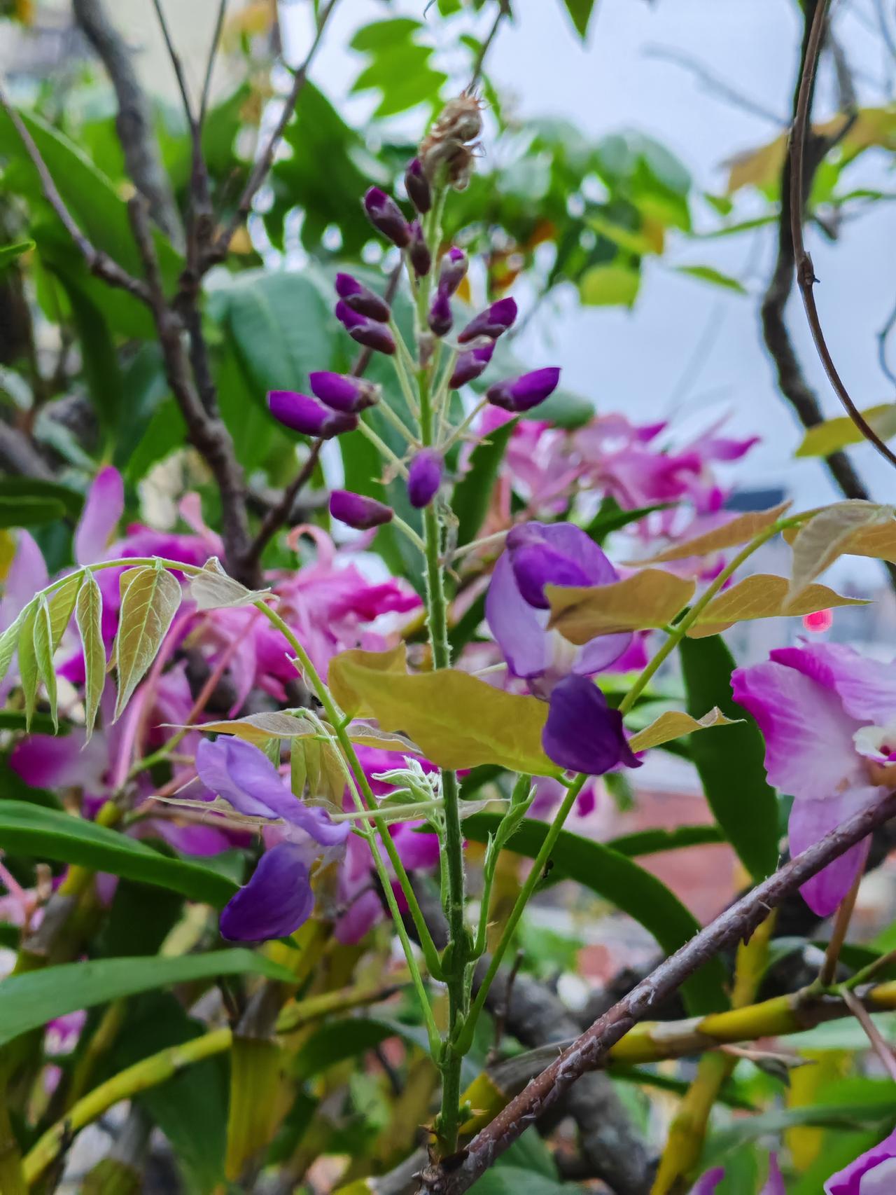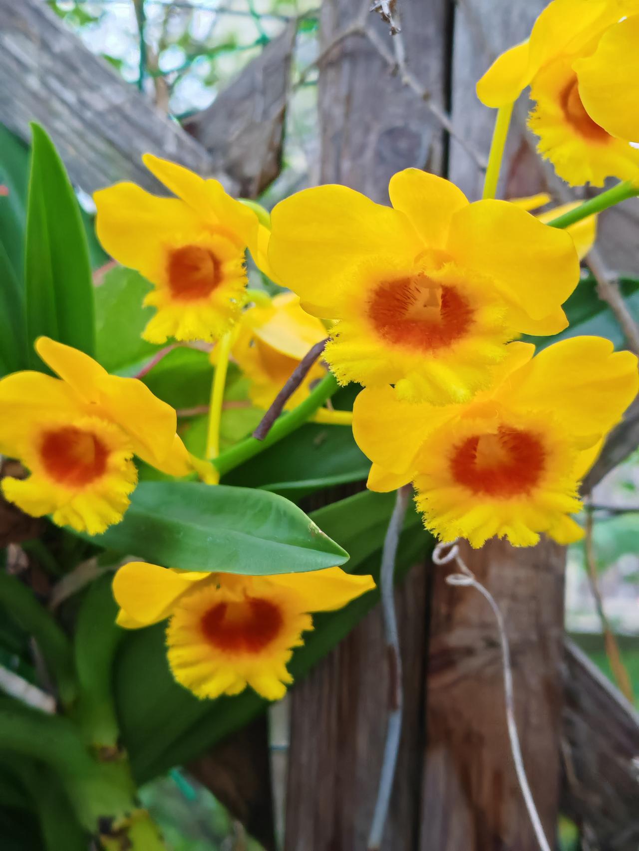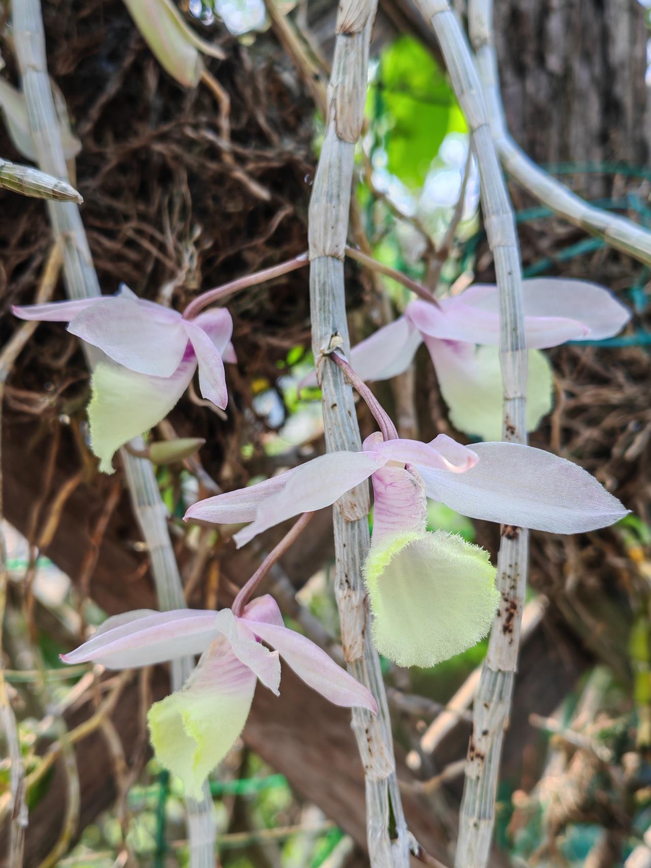 石斛兰的花期是哪个时候?现在已是石斜花期的后期了,之前我发过橙色和粉红色的石斛花图片,并介绍说还有淡绿色的石斛花。有的友友在评论区留言,说没见过淡绿色的石斛花,一定很特别。当时淡绿色的石斛还没开花哩。昨天终于开花了,今天专门拍了淡绿色和水红色石斛花,让还没见过的友友们欣赏一下。花朵不大,拍时有点逆光,效果不太好。之前拍的也放在一起,供友友们欣赏。