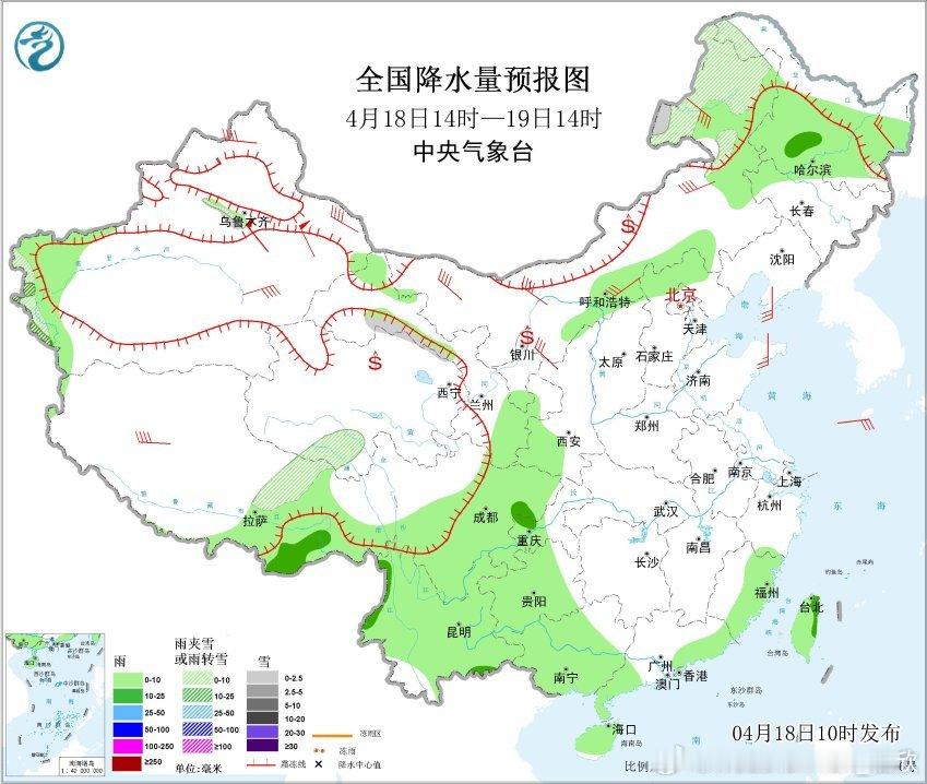 【降水】今天08-14时,我国晴天多、降水少。新疆天山沿线以及新疆西南部山区、西