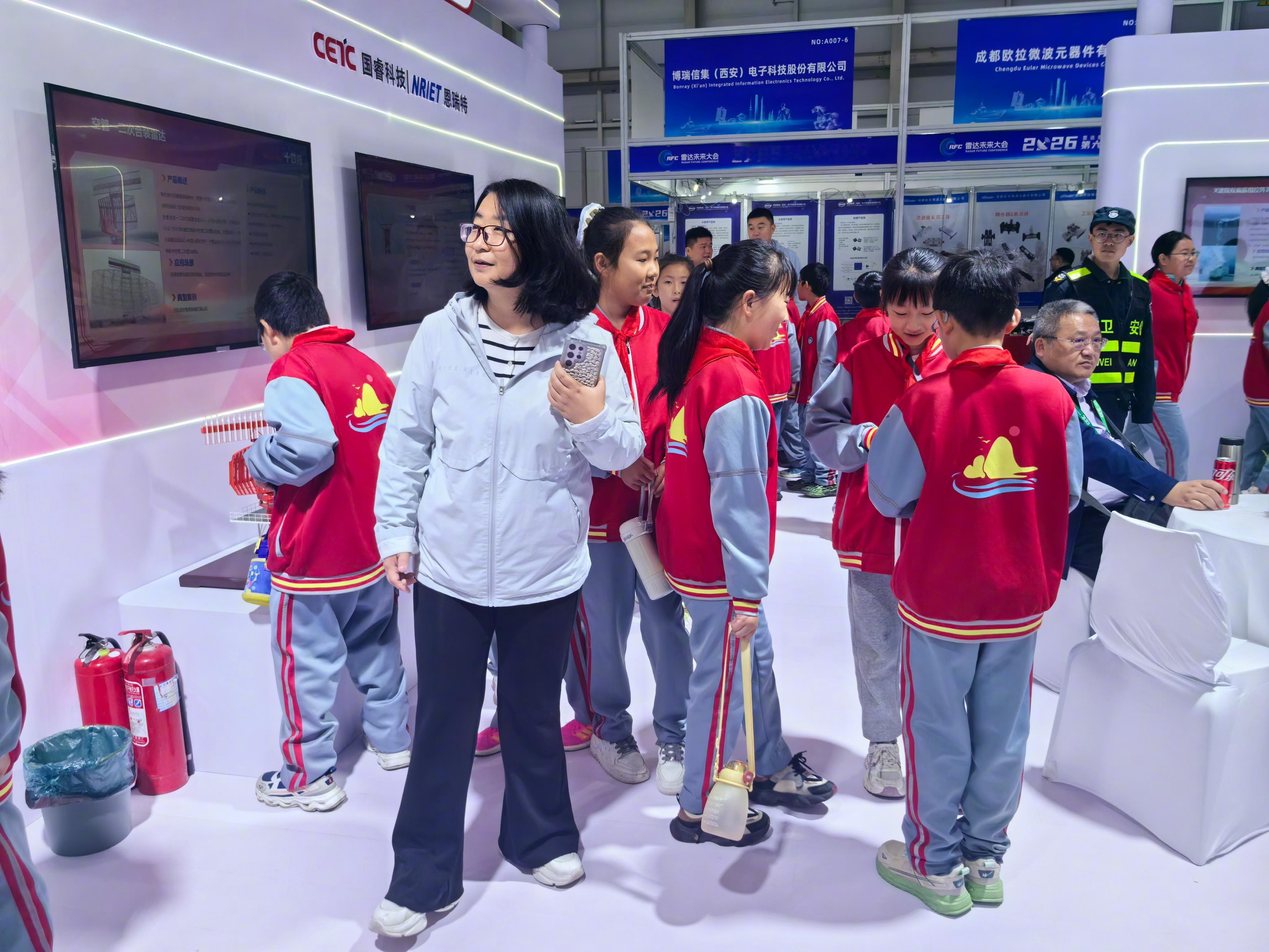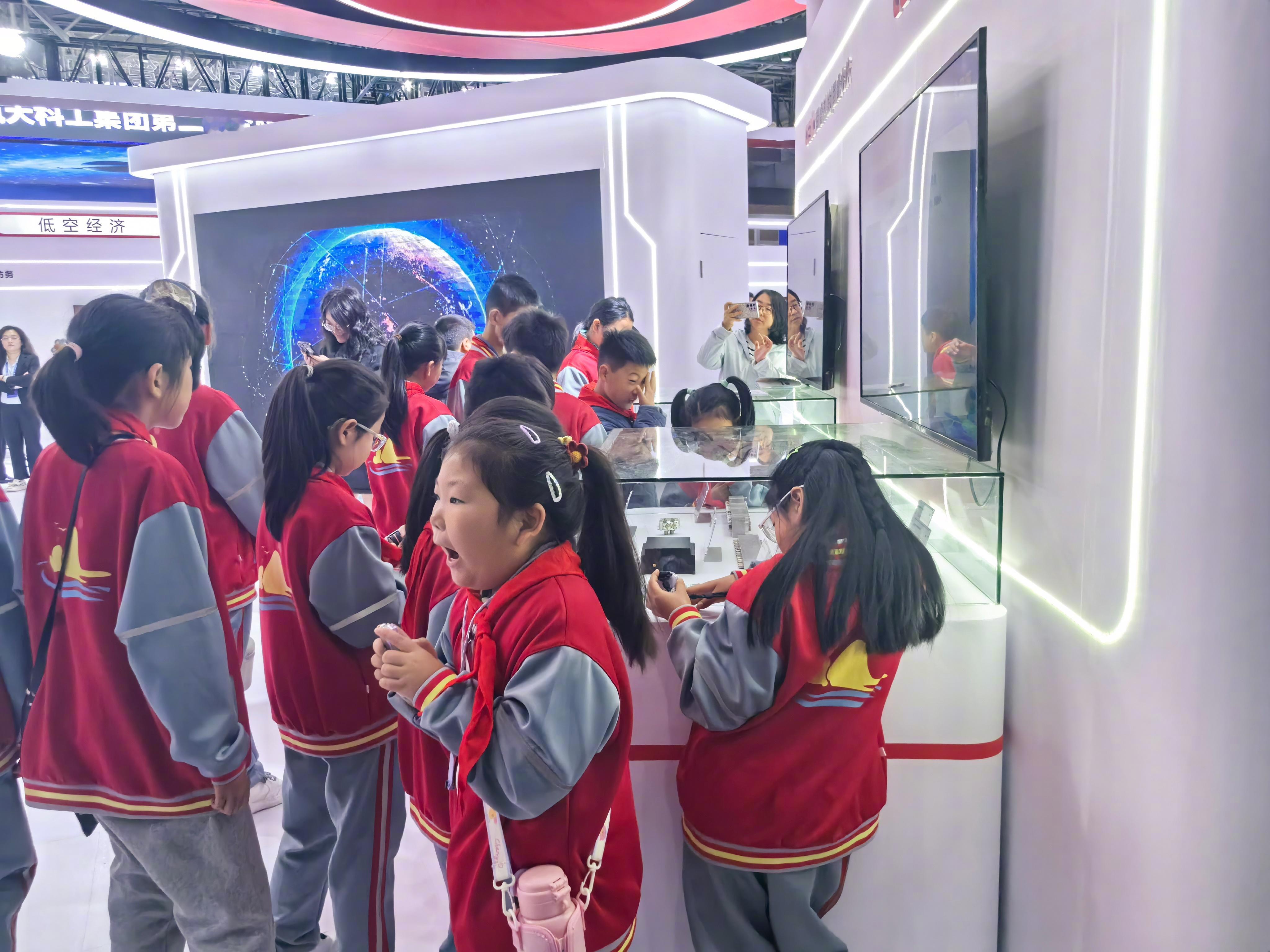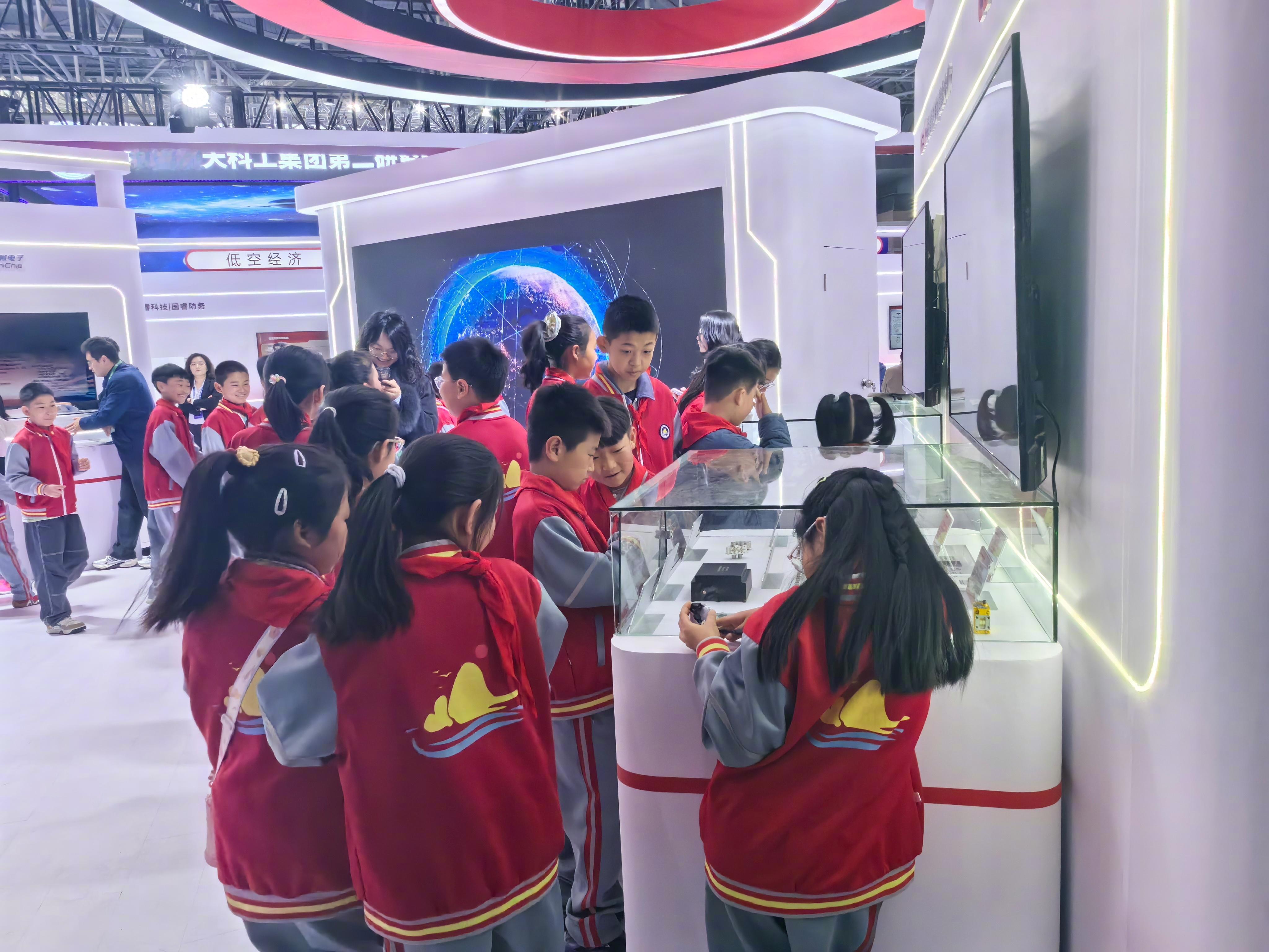 无处不在的雷达科技来雷达未来大会展馆参观的大都是行业人士,突然来了一队叽叽喳喳的小学生,他们穿着校服,由两位老师带领着,从14所展台开始参观。