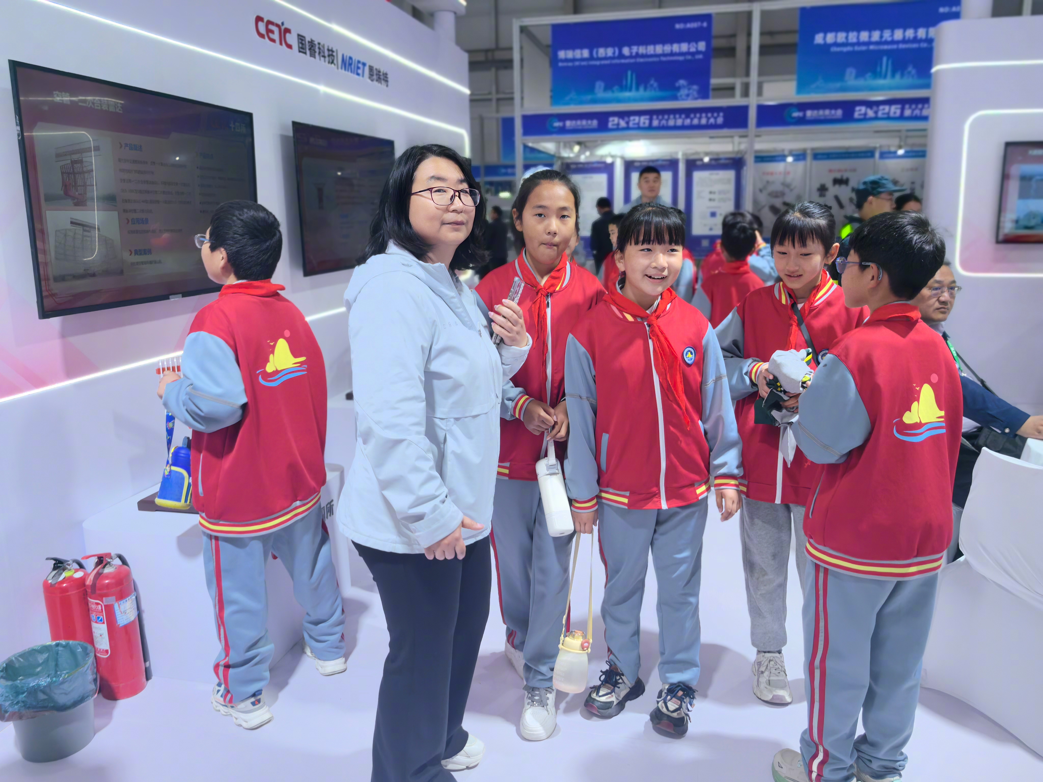 我挺好奇,采访了下带队老师,得知这是青岛西海岸新区世博城学校的学生,周末学校组织学生来展馆观摩。