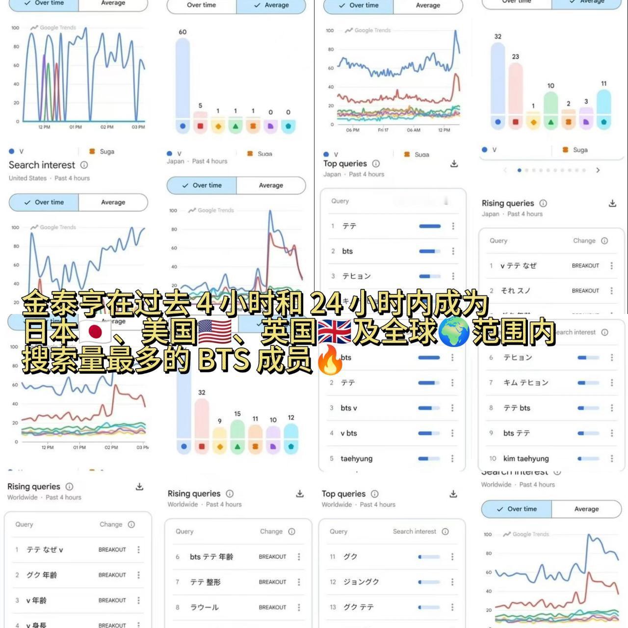 BTS东京演唱会金泰亨热度断层谷歌:日美全球搜索断层日推抓取断层第一推特tag提及量仅次于团,且是唯一有两个tag进入前十的成员🔥