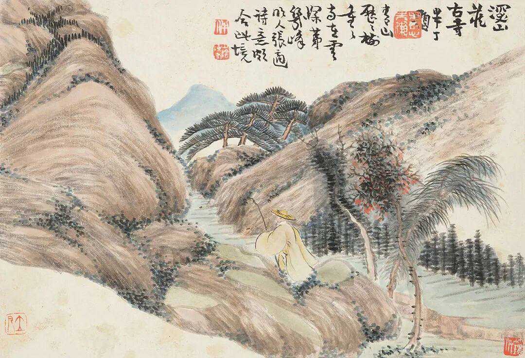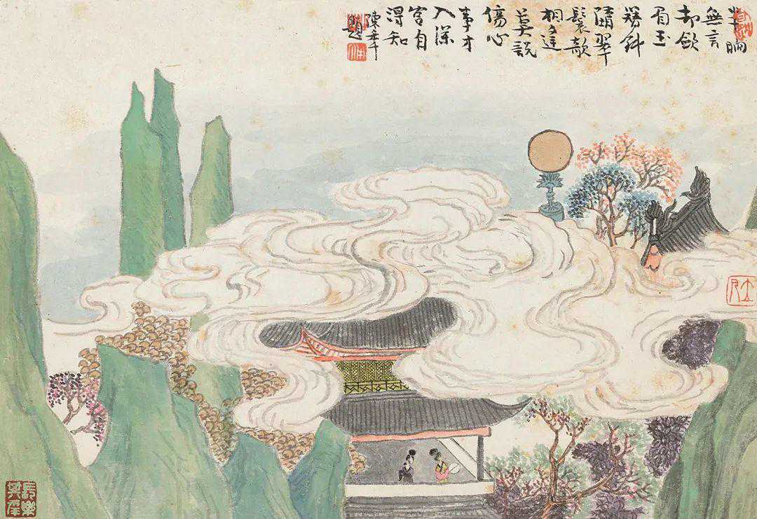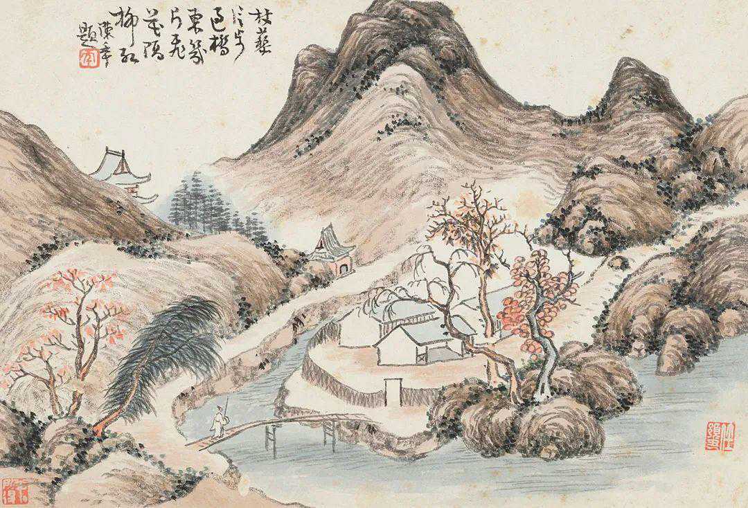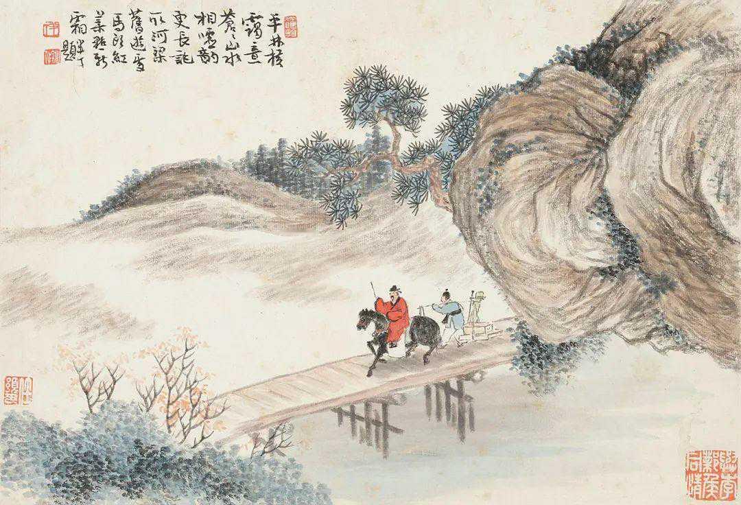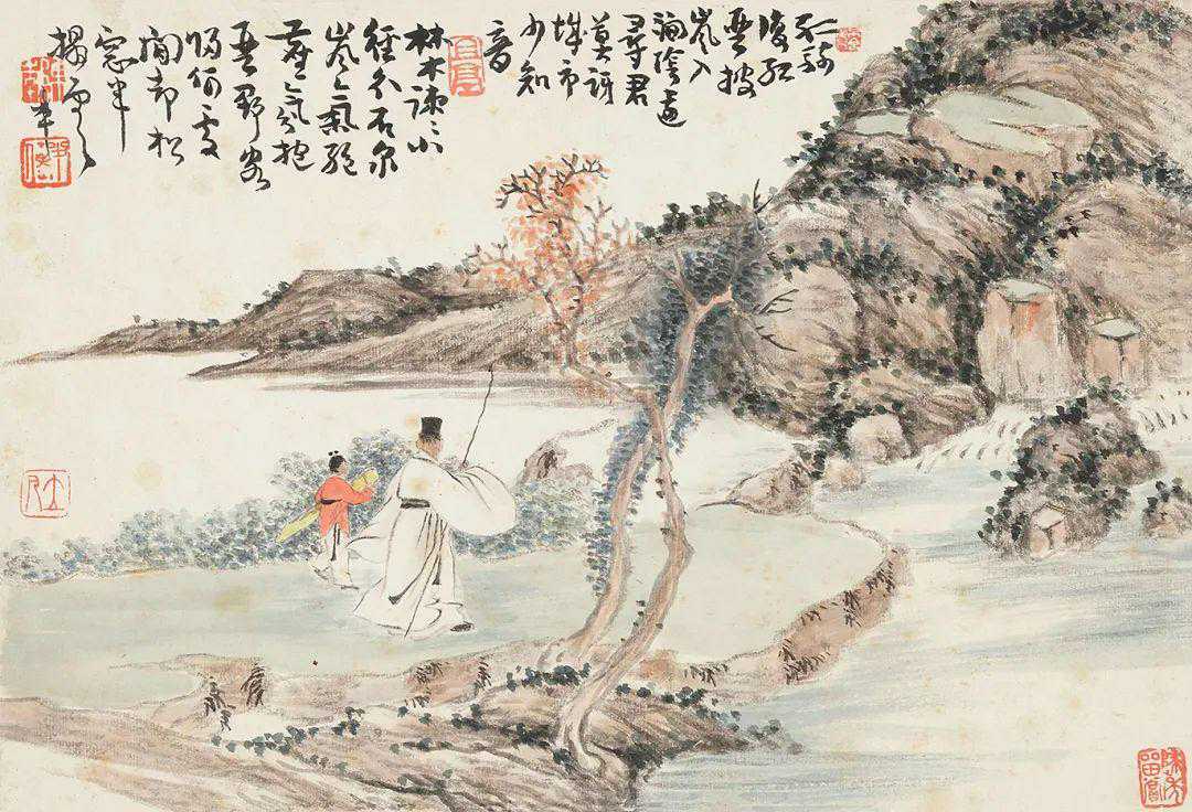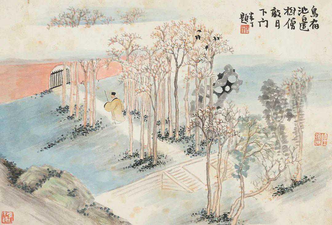 任预 诗意册,设色清丽,古朴雅致。任预(1853年—1901年),一名豫,字立凡,浙江萧山人,晚清著名海派画家,为早期海派大师任熊之子,山水、人物、花鸟,无所不精。在“四任”(任熊、任薰、任颐、任预)中,最为年轻。任熊逝世时,任预仅四岁,因此在画风上没有机会受到父亲的直接影响。笔墨初无师承,尽变任氏宗派,其画纯以天分秀出尘表。其人物画师承陈洪绶;山水中加人物、树石,位置衣貌,配合尤能出新;花卉能为宋人钩勒,根叶奇崛;画女子则秀媚天然,不事绚染,惟互面淡妆而已,尤善传神之作。这就是中国风遇见艺术