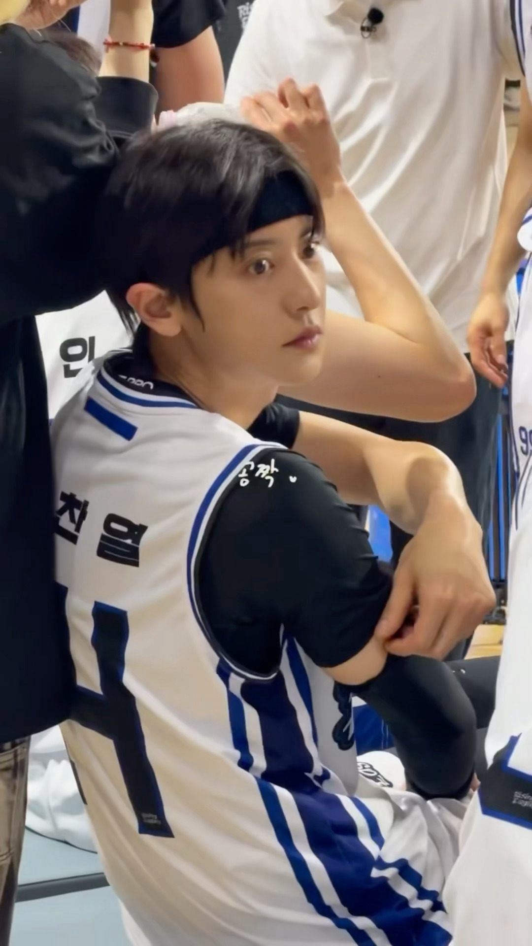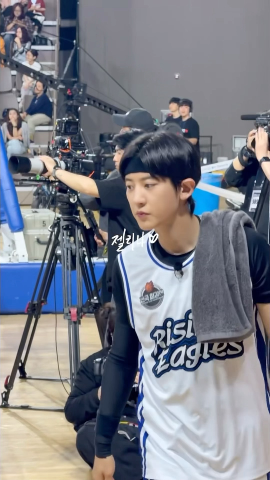 朴灿烈今日《热血篮球队》录制谁家185帅气男大篮球员,戴上发带好帅吧朴灿烈篮球赛