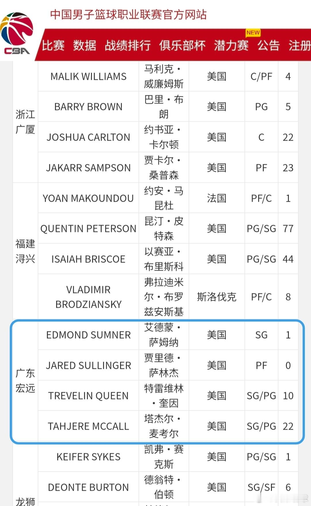 CBA外援最新注册名单更新,暂时还没有看到广东队拉科塞维奇的身影,看来他的宏远首