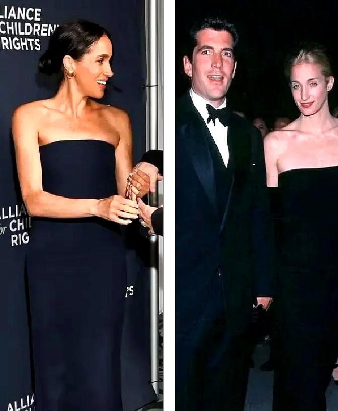 港媒更是添油加醋,翻出梅根以前好几次“致敬”肯尼迪夫人或她家族女性的造型,什么黑纱小礼帽、白手套,甚至连站姿都像。