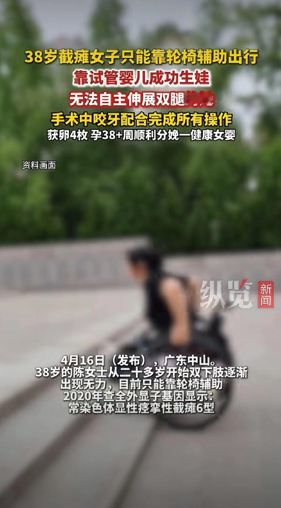 广东38岁高位截瘫陈女士,经过试管移植成功生下健康宝宝,本来是皆大欢喜的事,评论区却很多人唱反调,认为她不该生孩子。