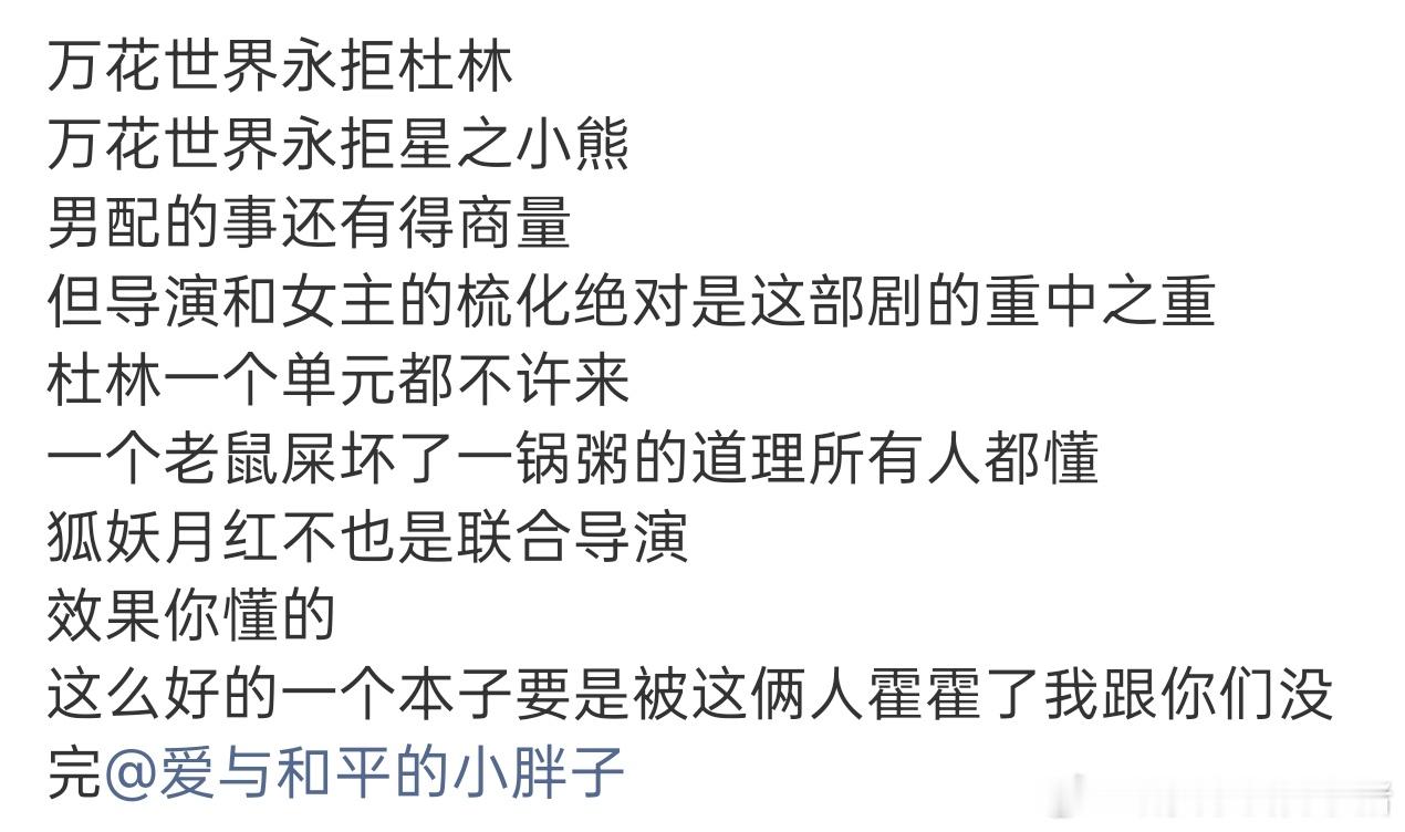 鞠婧祎粉丝永拒万花世界导演杜林,因为已经四连扑了。。。