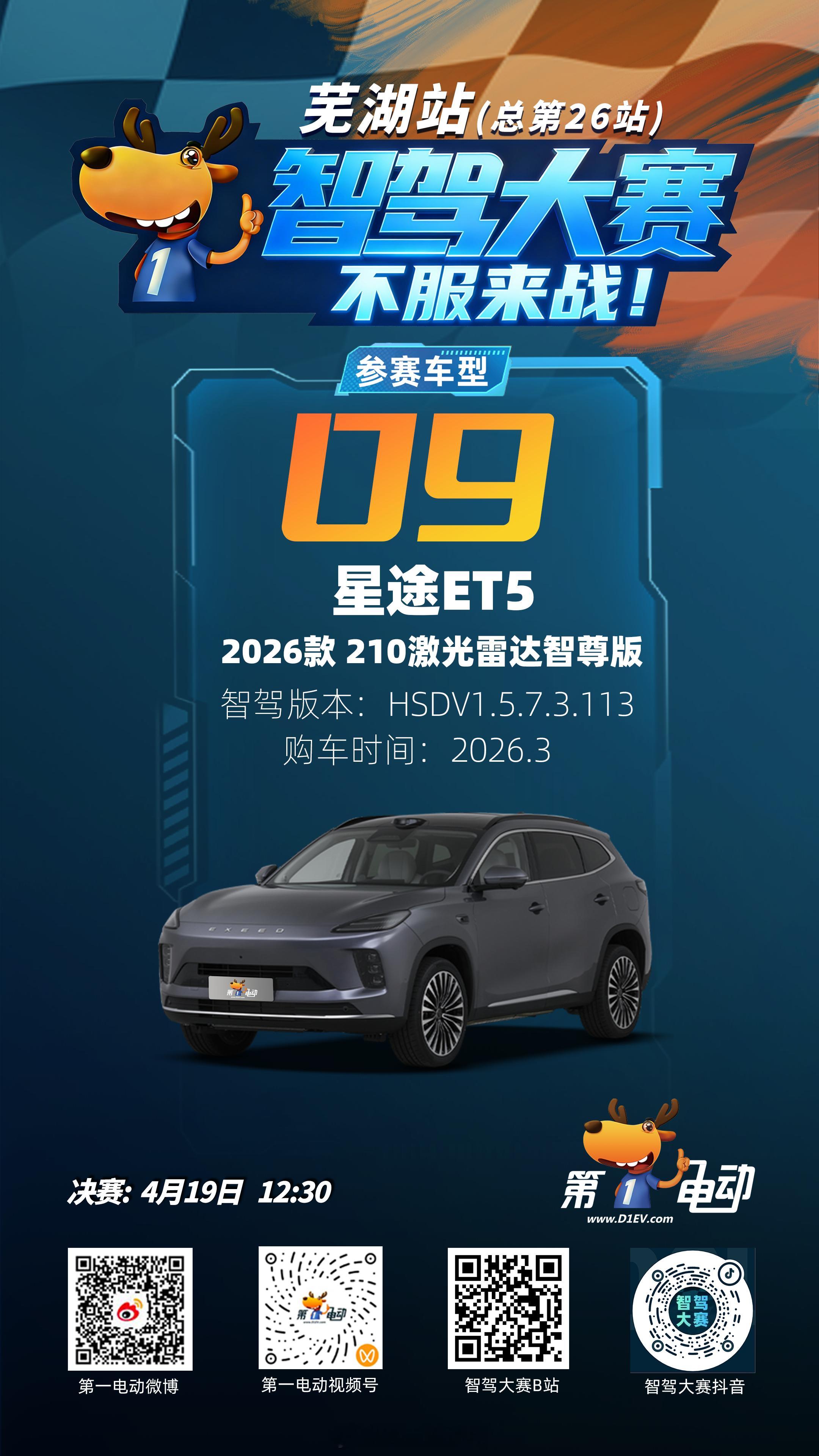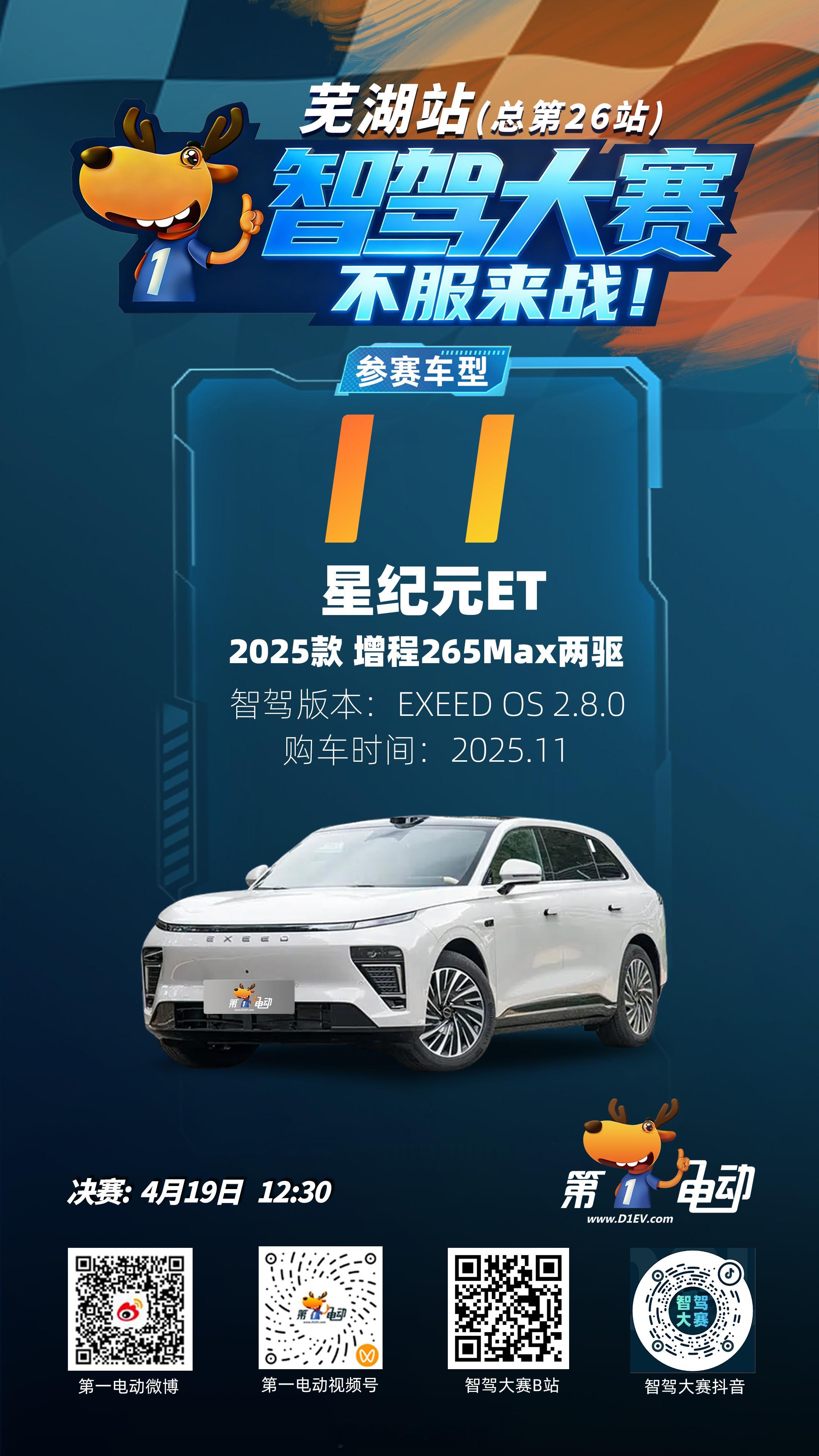⏰ 决赛直播:4月19日 12:30📺 第一电动 微博/视频号;智驾大赛 B站/抖音终极一战,不见不散!