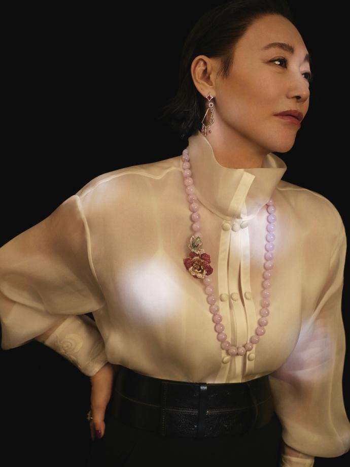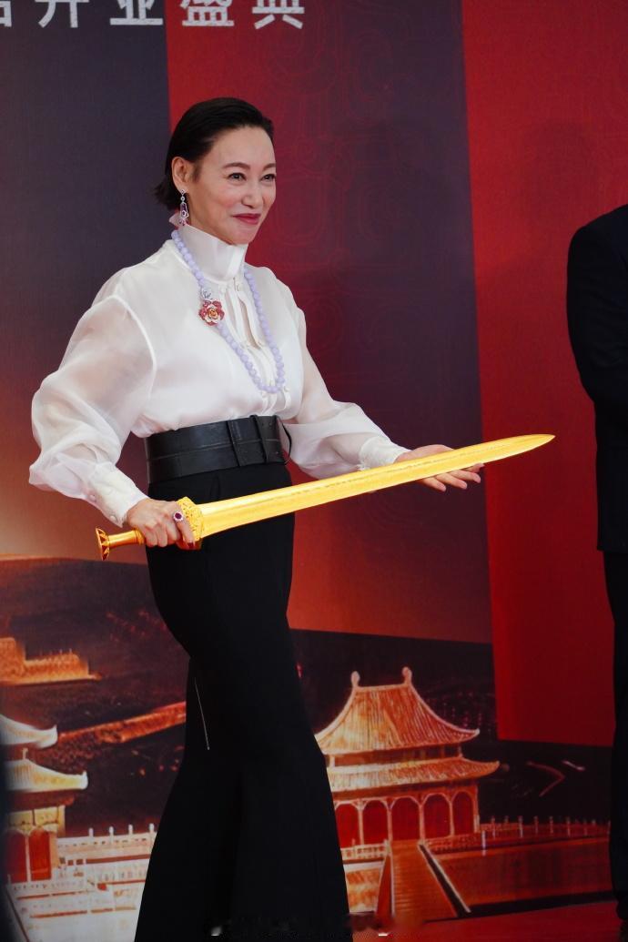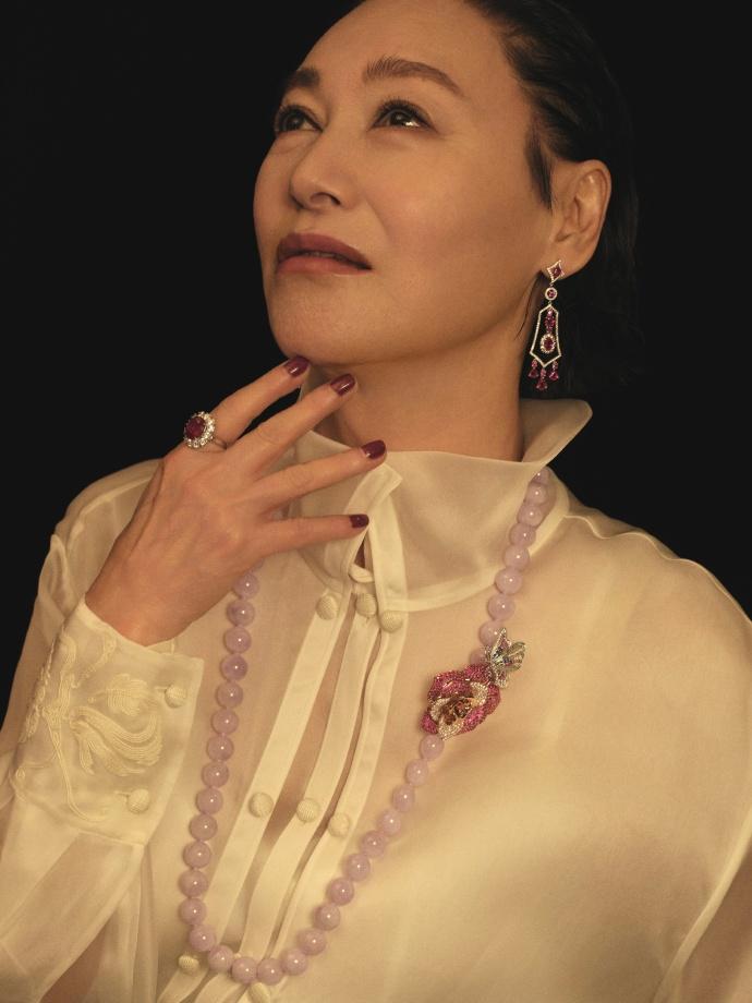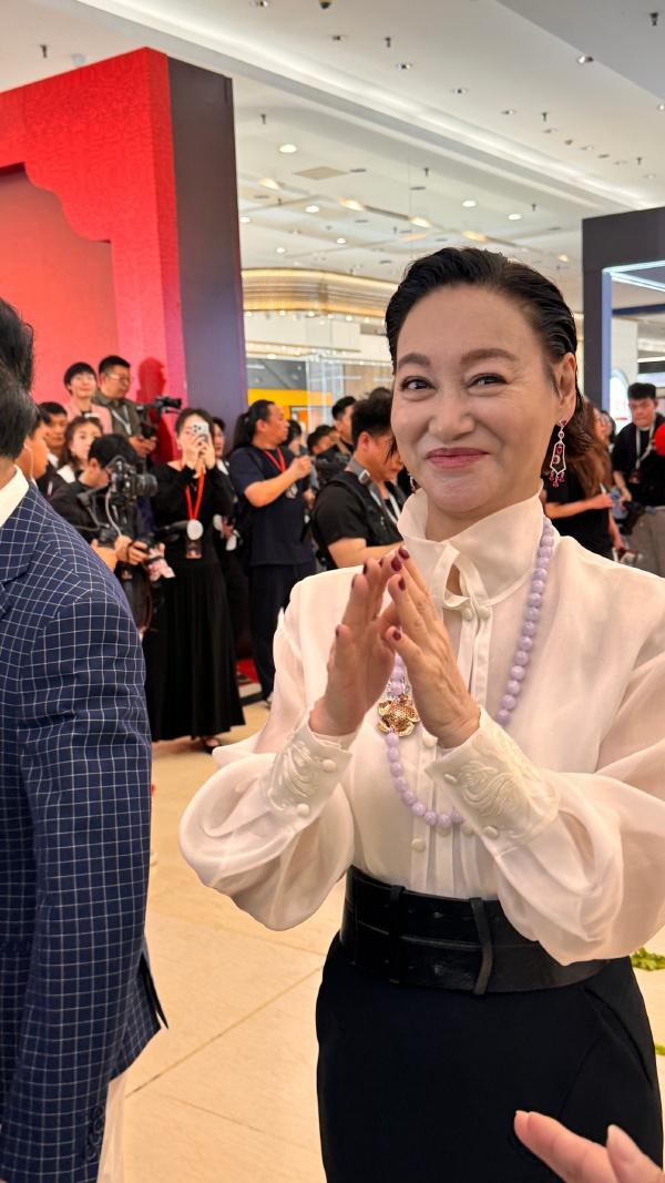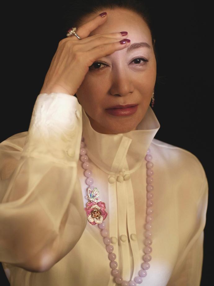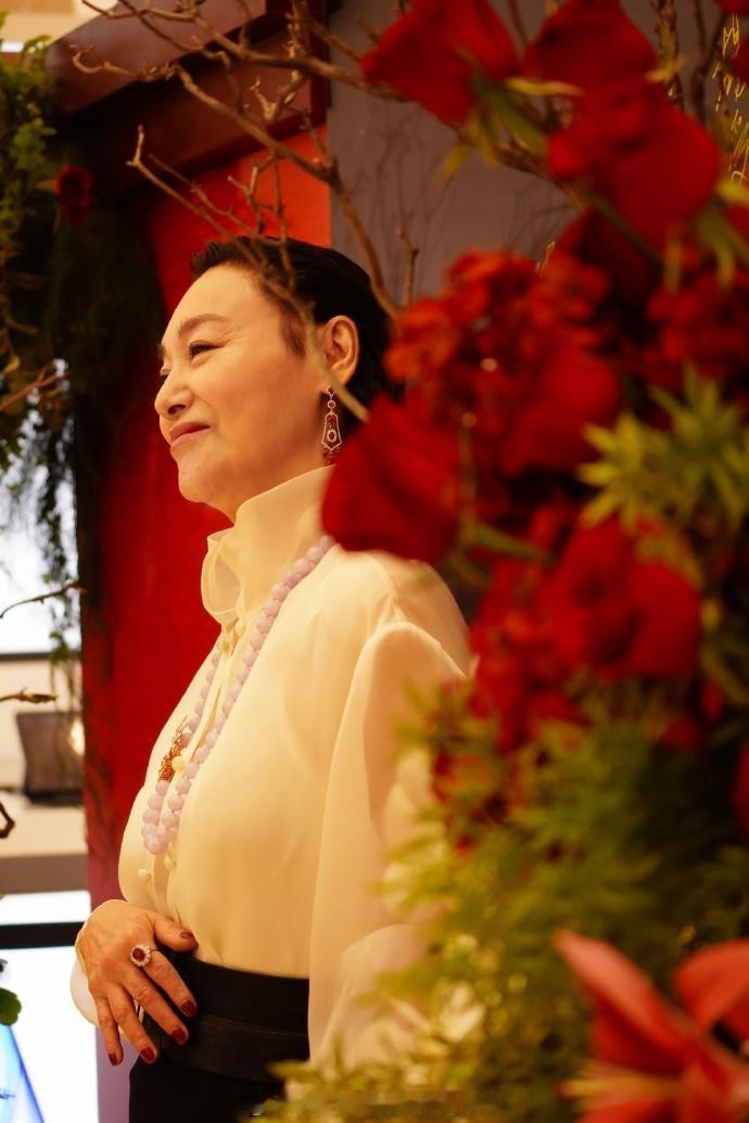 惠英红脖子上挂着奢华的珠宝项链,看起来很有国际大牌明星风采。