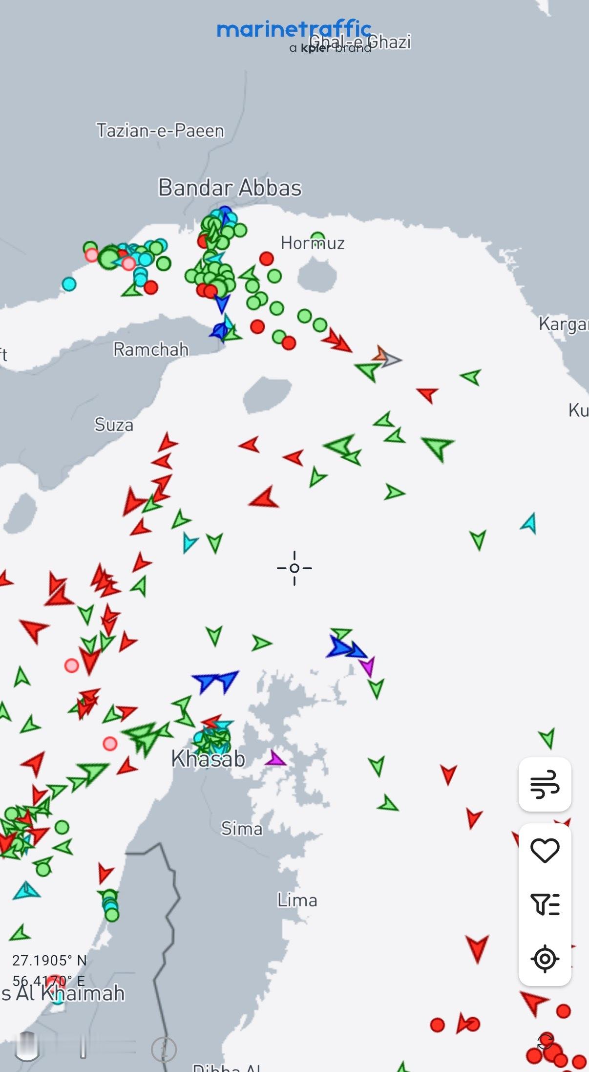 🔻可以看到:无论是油轮还是货轮,大量此前准备穿越霍尔木兹海峡的船只都在调头。?