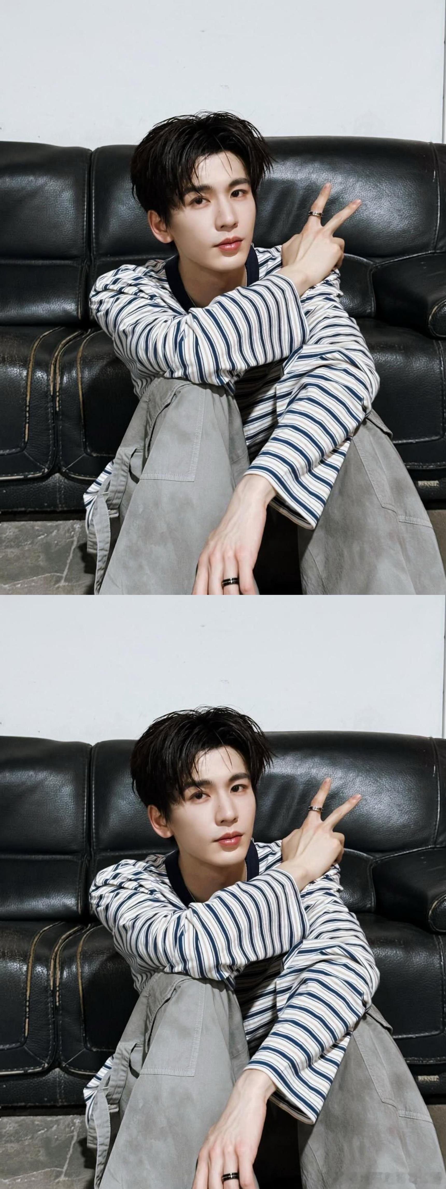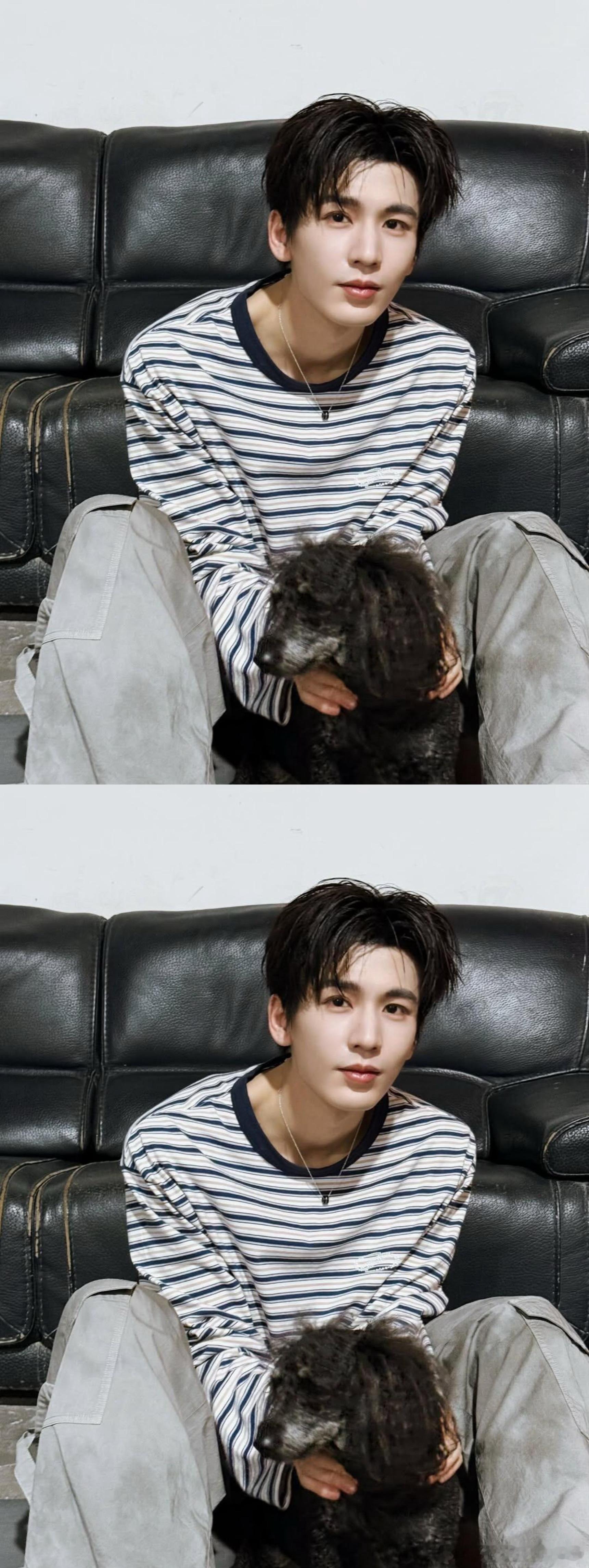 张凌赫Ins更新,条纹上衣造型居家男友感
