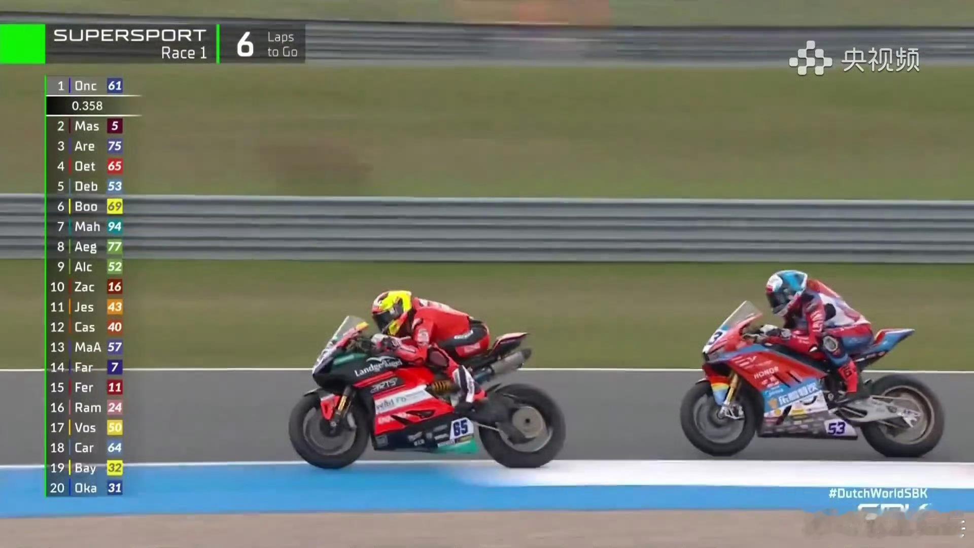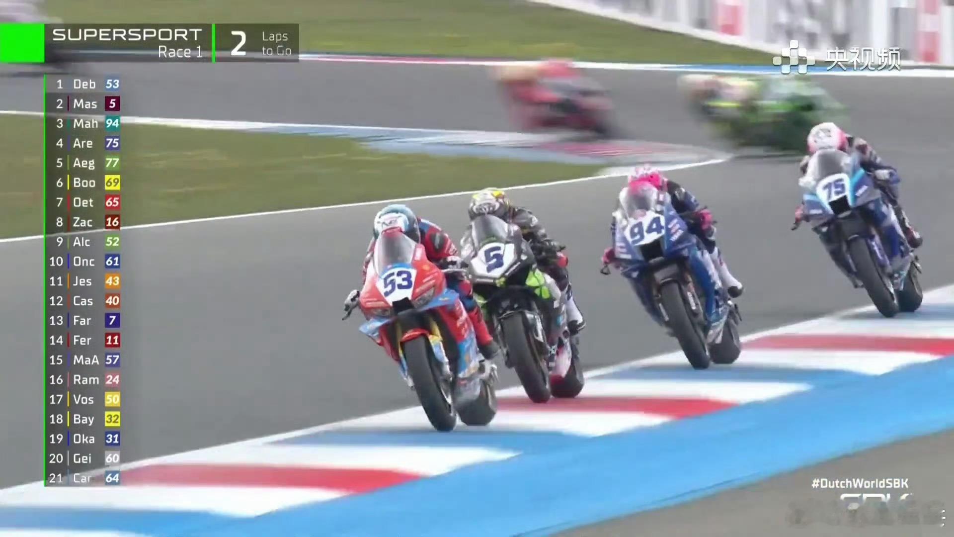 世界超级摩托车锦标赛荷兰站SSP组决赛第一回合,张雪机车53号车手瓦伦丁·德比斯在比赛中一度升至第一,最终获得第四名,5号车手Masia获得冠军。