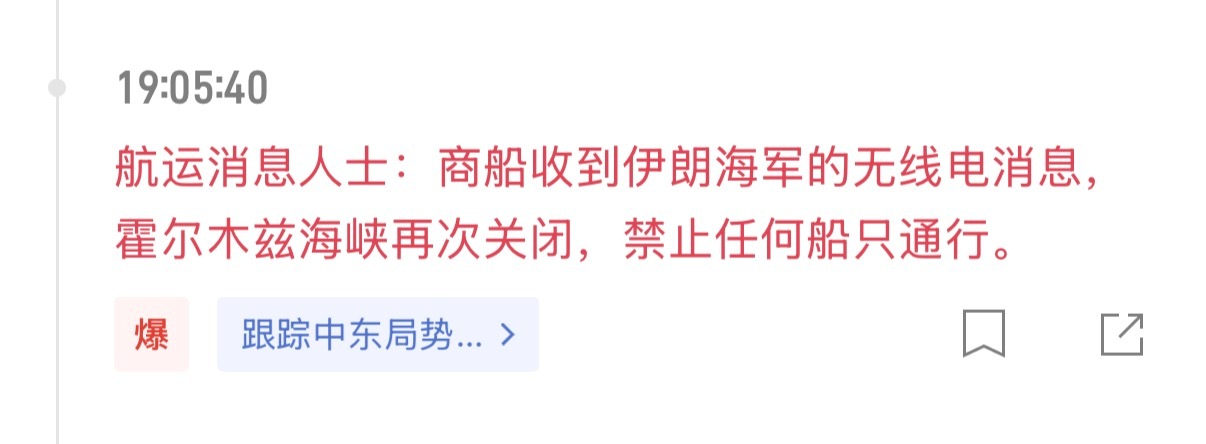 🔻媒体确认:伊朗在霍尔木兹海峡开火。🔻其中一艘是印度船。伊朗恢复对霍尔木兹海