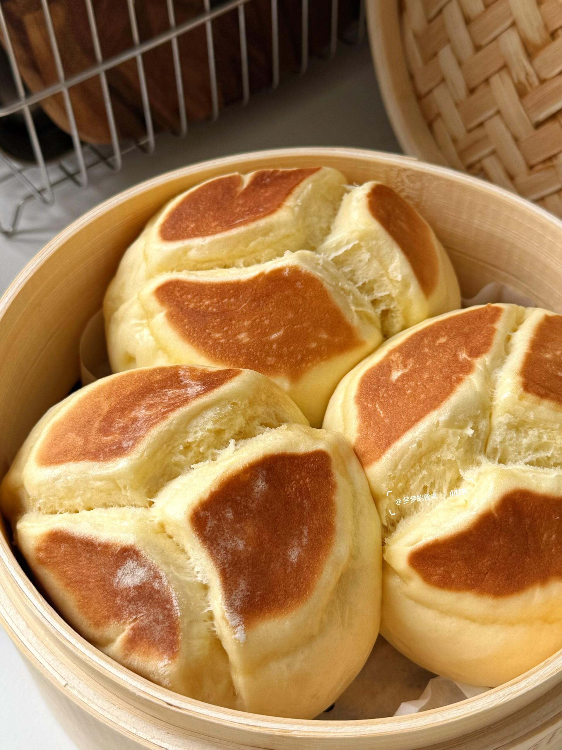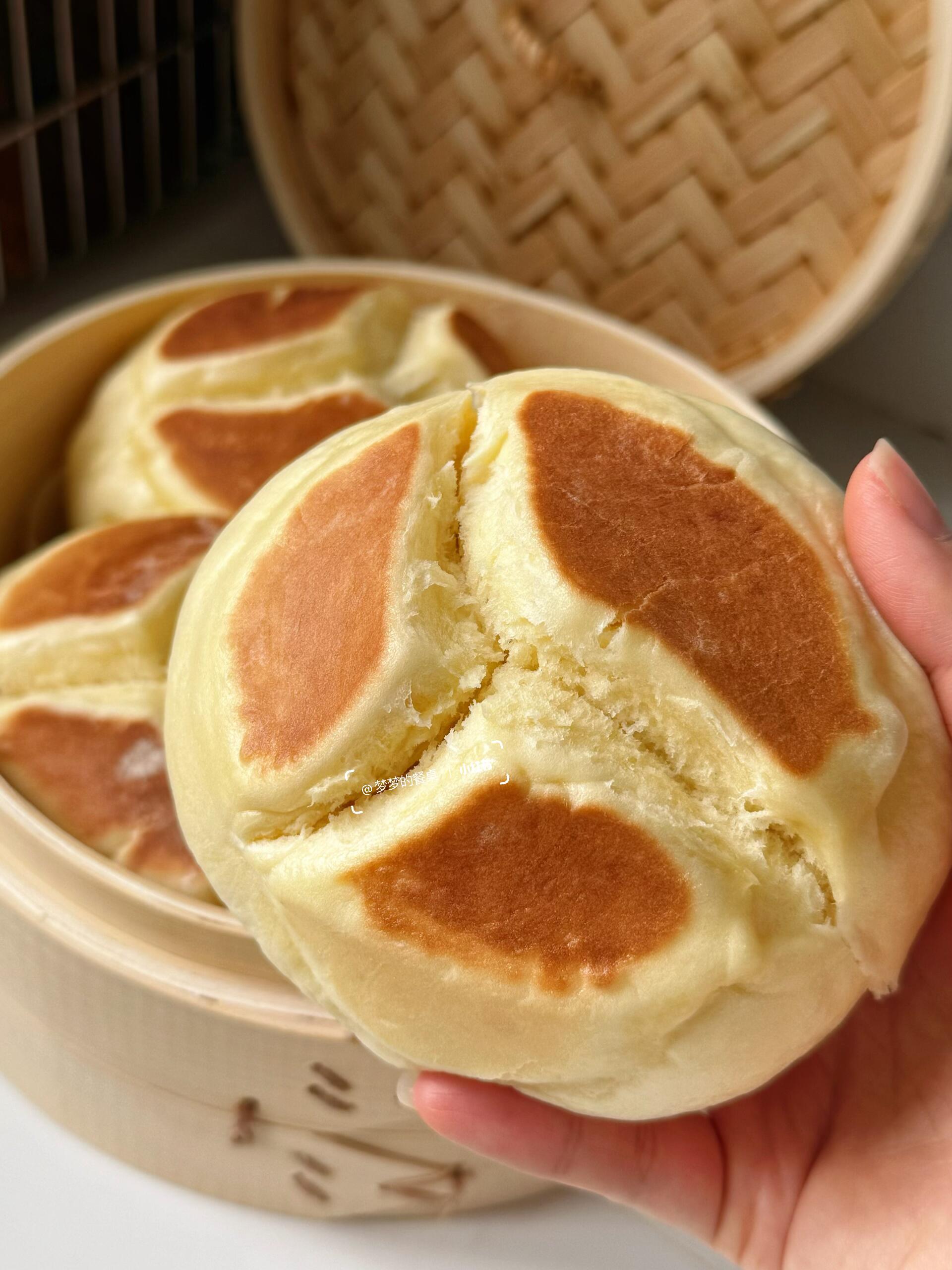 家人们谁懂啊😭 终于做出不塌陷、不发硬的奶香开花馒头了!