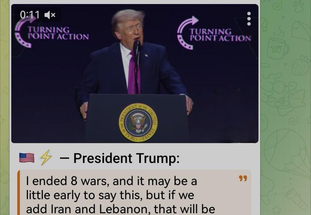 特朗普:我结束了8场战争。现在说这个可能还为时过早,但如果再加上伊朗和黎巴嫩,那将是结束了10场战争,拯救了数百万人的生命。想想我们拯救了多少生命吧。