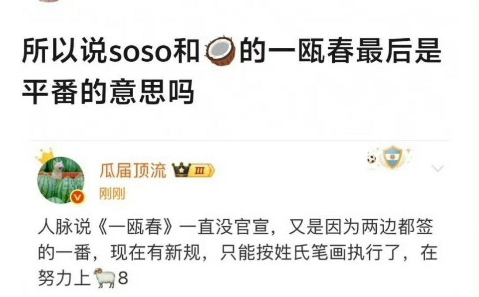 一瓯春传出平番,许凯之前还和谭松韵平番呢,今天空瓶交流的结果也是周也粉丝在前,咖位和粉丝的流动都很快啊