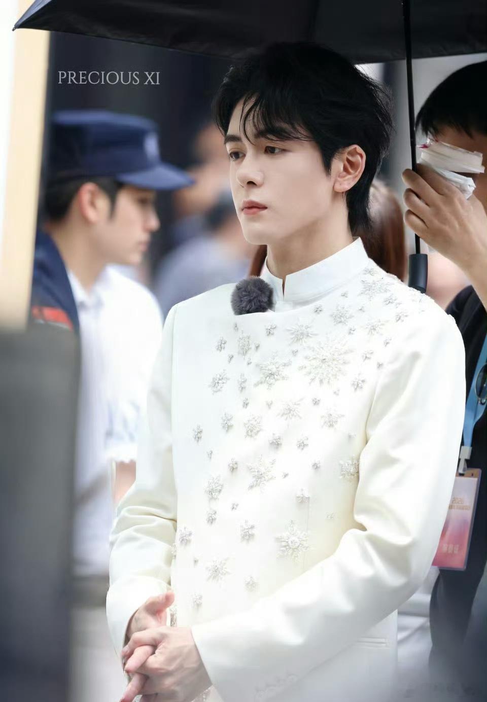 曾舜晞央视五四晚会录制路透,白色新中式造型,好贵气啊一身正气