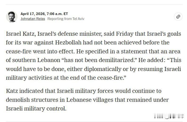 纽约时报:昨日宣布的黎巴嫩停火协议已被违反