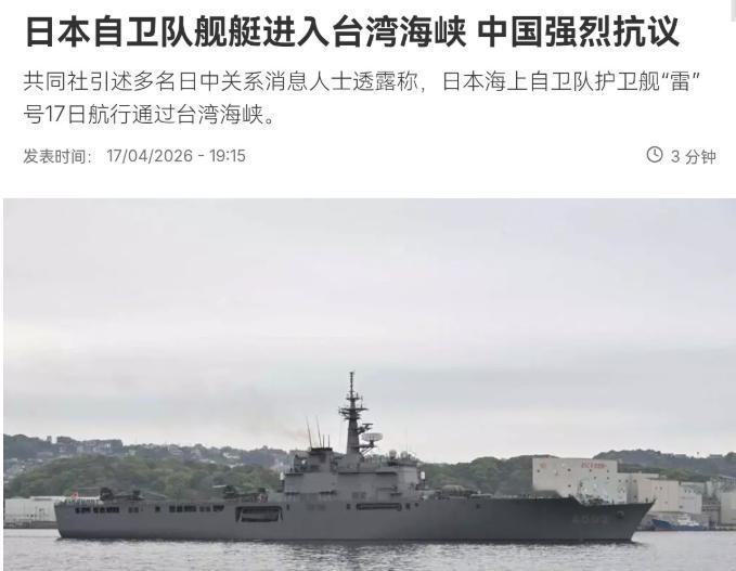 前几天,根据法国媒体的报道,日本自卫队的一艘军舰突然跑到了台湾海峡这片水域,这件事一出,立刻引起了咱们国家的高度警惕和强烈抗议。