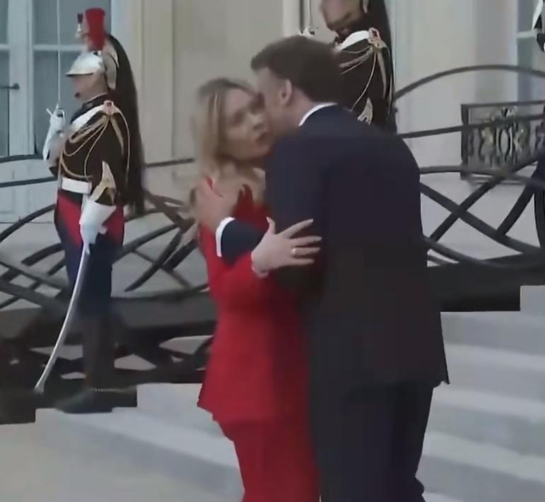 马克龙“拥抱”梅洛尼,左“亲”一下,右“亲”一下,贴面的力道不小,弄得梅洛尼都有点不好意思了!是不是忘记了人家也是堂堂的一国总理,早已不是当年的酒吧服务员,这便宜占的有点过头,就不怕回家挨老婆揍?[捂脸]