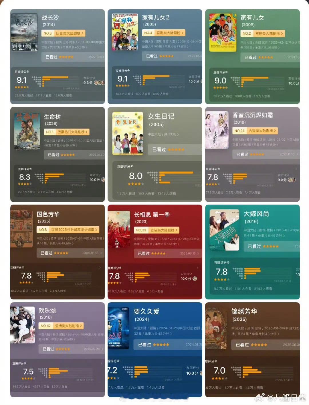 杨紫作品豆瓣评分和迪丽热巴作品豆瓣评分对比