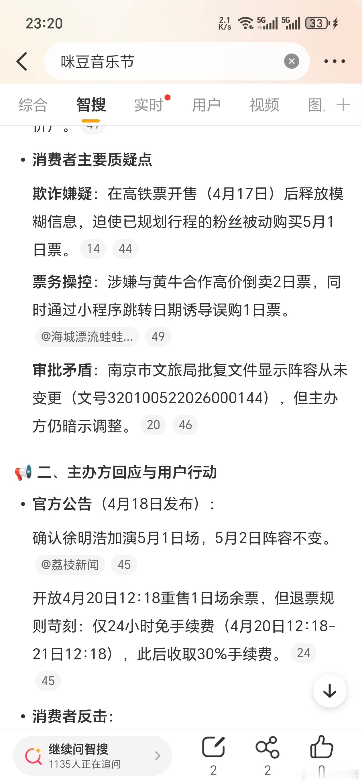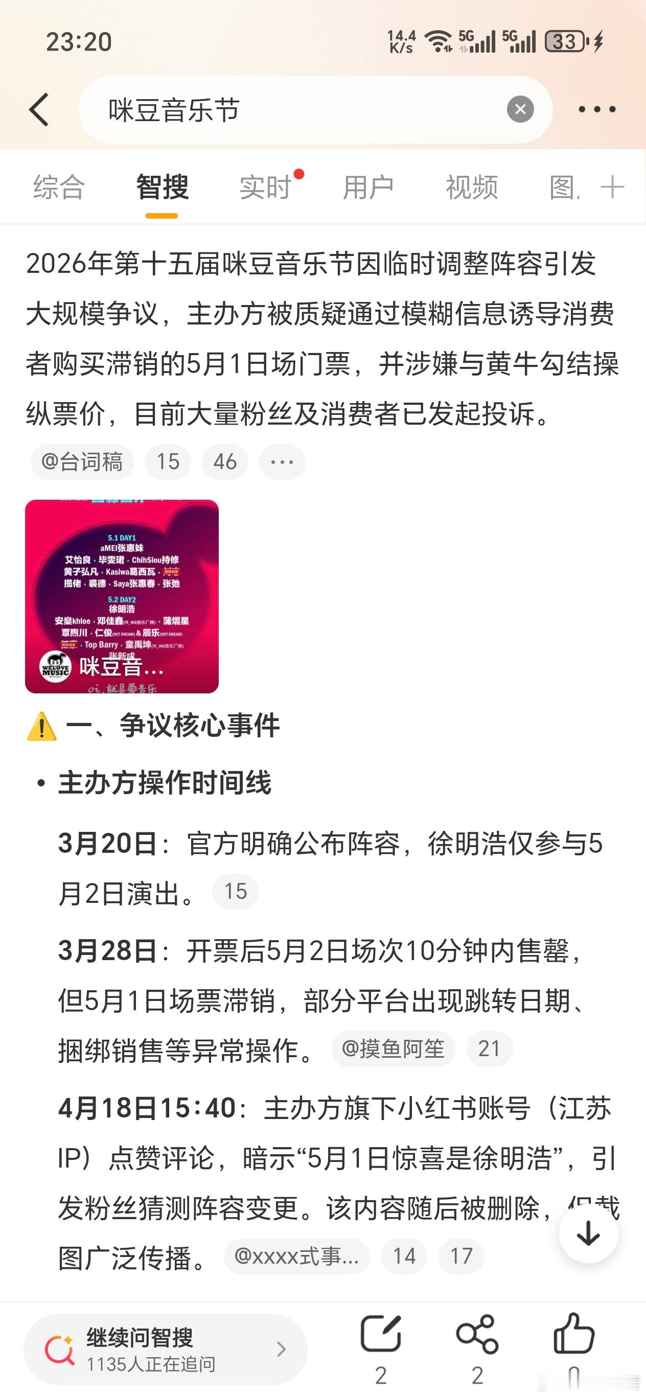 懂了,就是1号的票售卖进度始终跟不上2号,所以咪豆的主办方现在让2号的主咖徐明浩多唱1天1号救场了这也是有点太不专业了吧,粉丝质疑真的是完全没问题的,有点太欺负人了咪豆音乐节