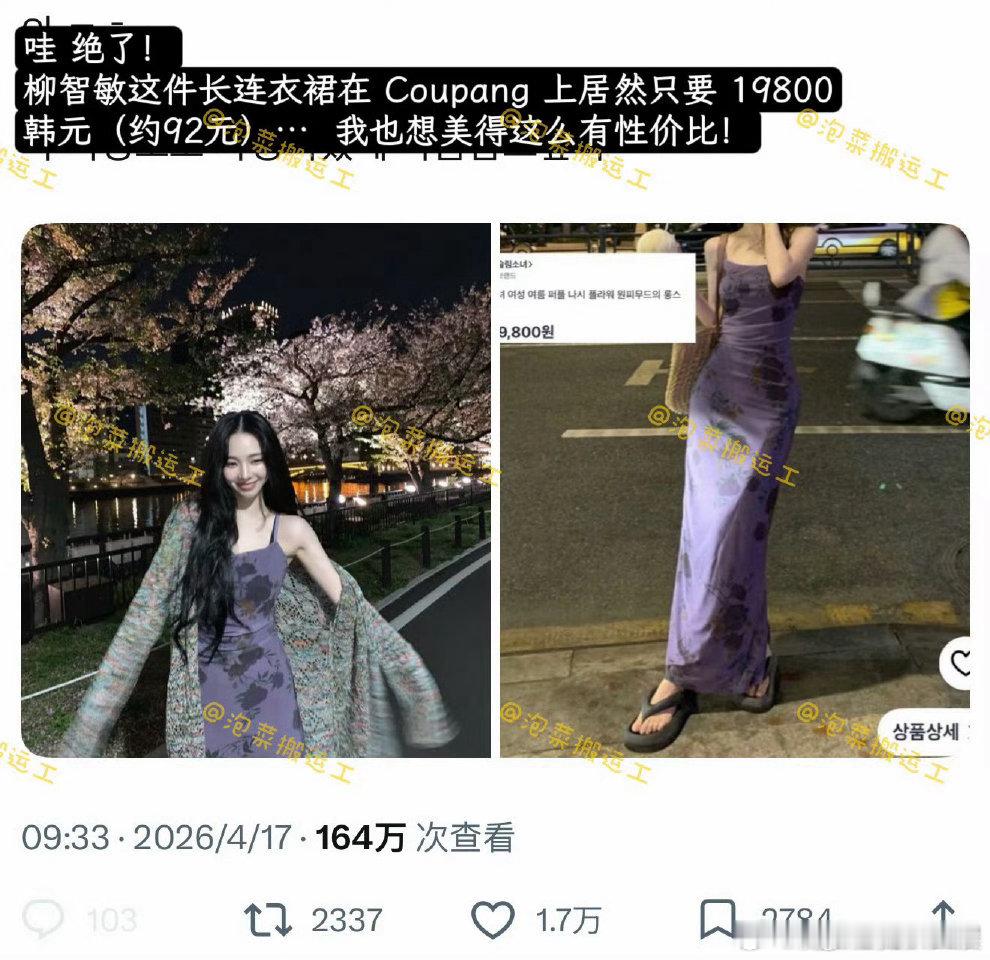柳智敏穿的长裙只要92元果然脸才是最权威的出装!看不出来这裙子只要92…