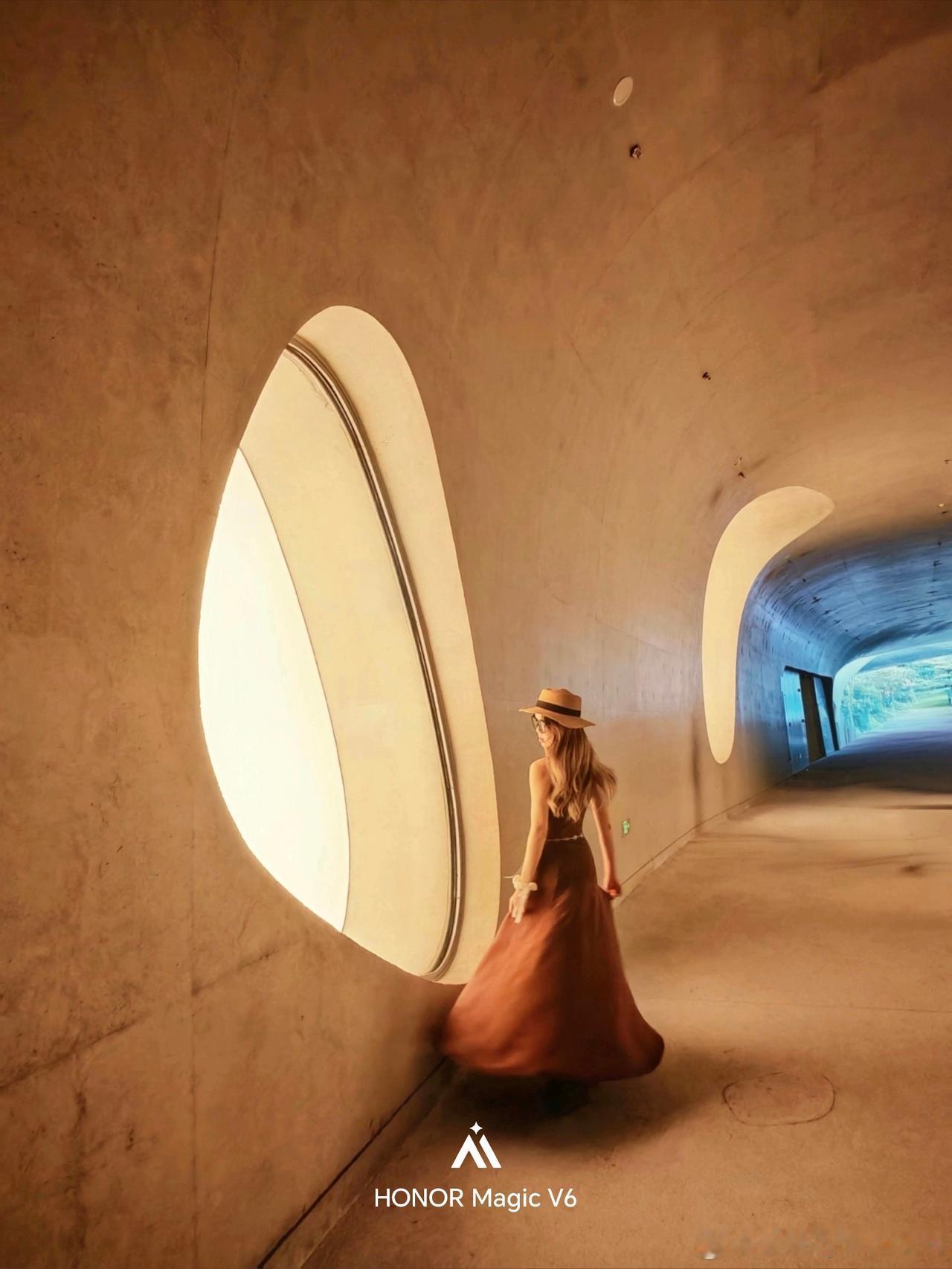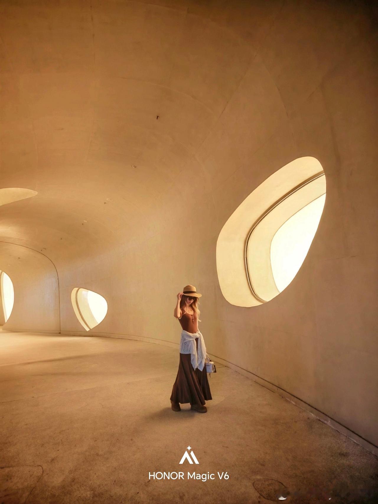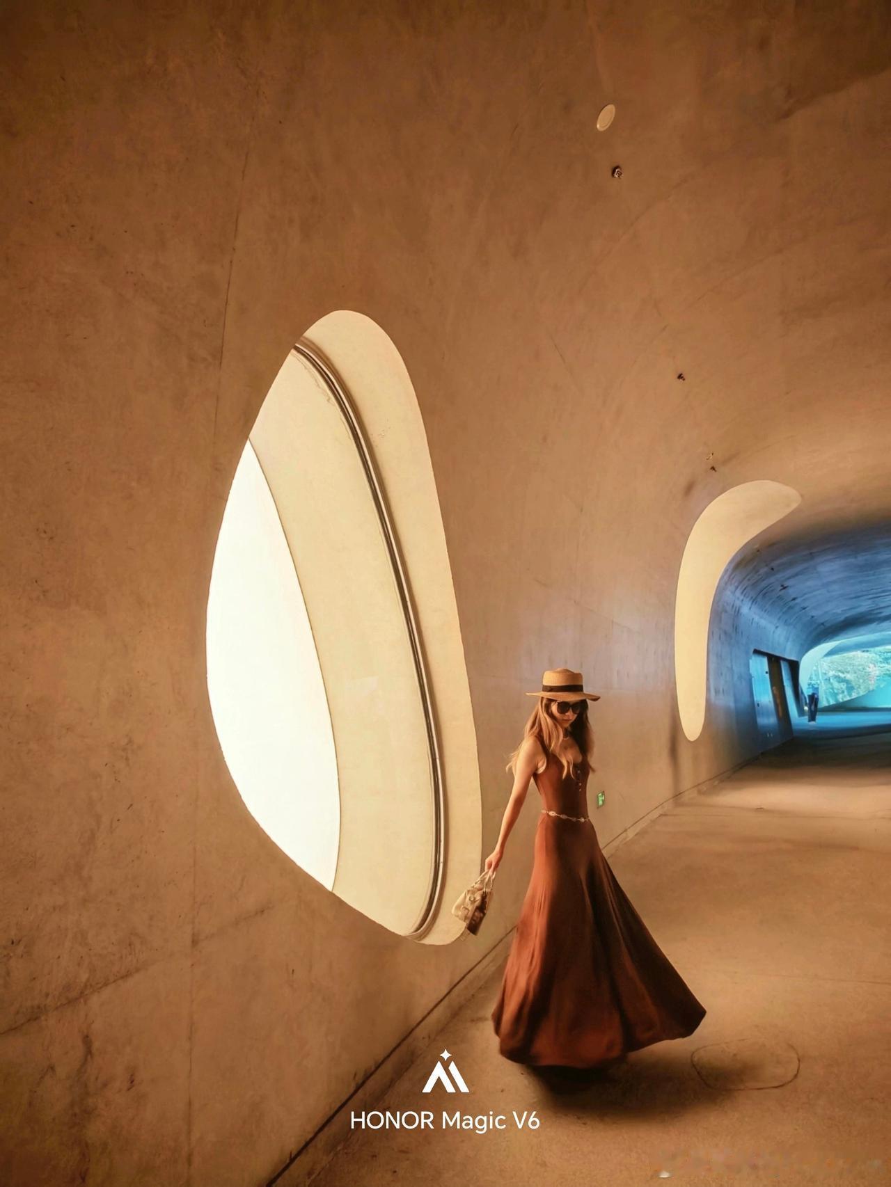 如果没有猜错的话,这组人像写真的场景在,深圳南山人才公园旁边,海边原石隧道区域,刚刚看到荣耀首席影像工程师罗巍,分享的这组利用荣耀Magic V6拍摄的,优美的曲线,自带暖调滤镜效果,确实理想 畅聊数码新品 数码资讯