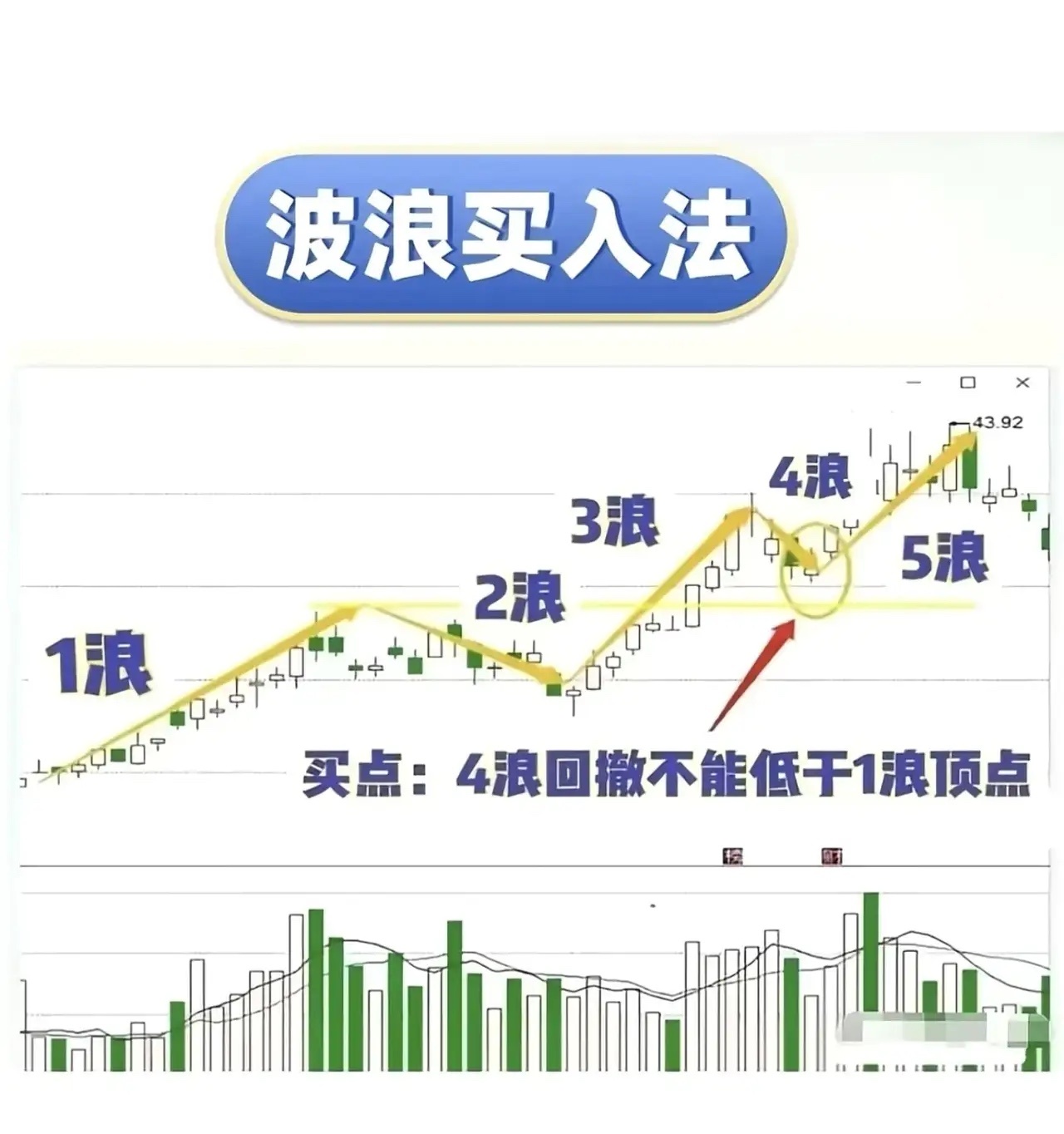 - 1浪为初始上涨- 2浪回调不破1浪起点- 4浪回调不能低于1浪顶点(重要风控点)- 5浪为最后主升段,宜轻仓参与