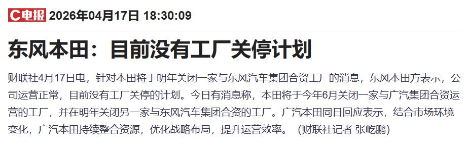 合资方反应却微妙得很。东风本田说"目前没有工厂关停计划",广汽本田则出来打太极,说是为了"整合资源、优化布局"。