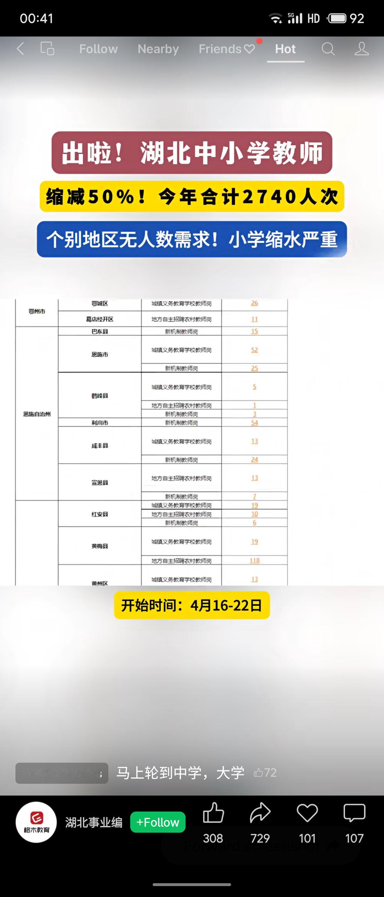 2026年湖北省中小学教师公开招聘人数大幅缩减50%,总计仅2740人次,个别地区甚至无需求,小学阶段缩水尤为严重。从恩施、黄梅等地岗位来看,农村和城区教师岗均有减少,报名时间为4月16日至22日。