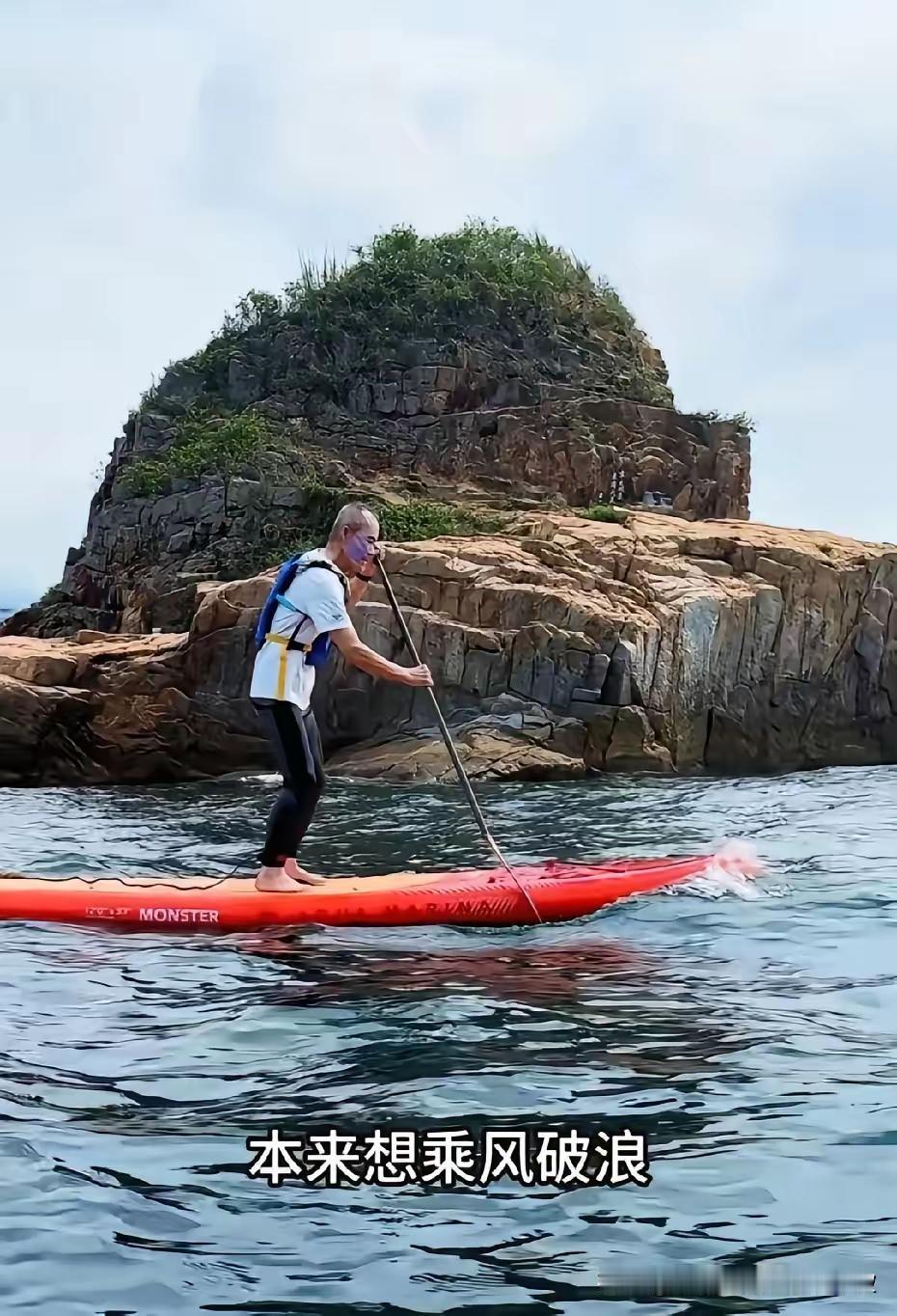 75岁王石出海玩帆板,,结果一个失误直接扎进海里!这是又一次放飞自我了,家里的小老婆和小女儿也不管了!