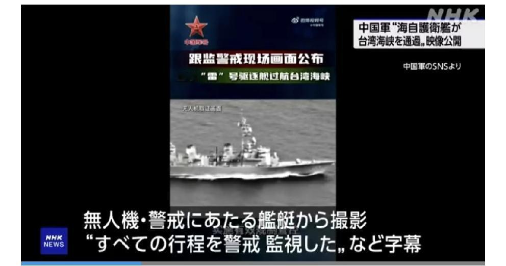 18日,中国军队通过社交媒体公开了17日海上自卫队护卫舰通过中国大陆和台湾之间的台湾海峡的视频。