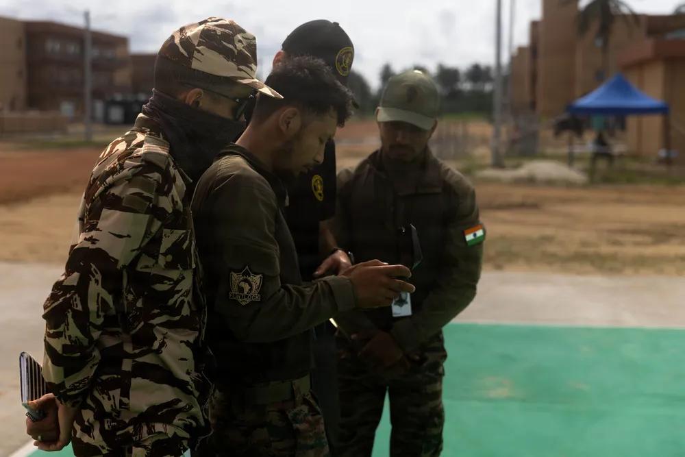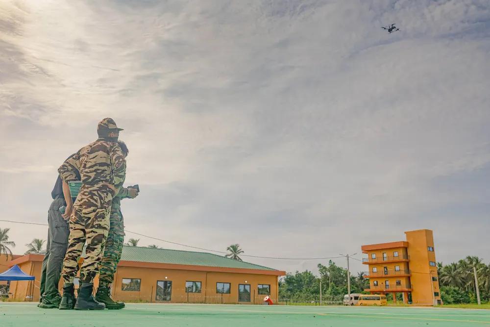 2026年4月17日,多国合作伙伴在科特迪瓦一处科特迪瓦训练设施Flintlock 26期间观看无人机系统小型熟悉课程的演示。